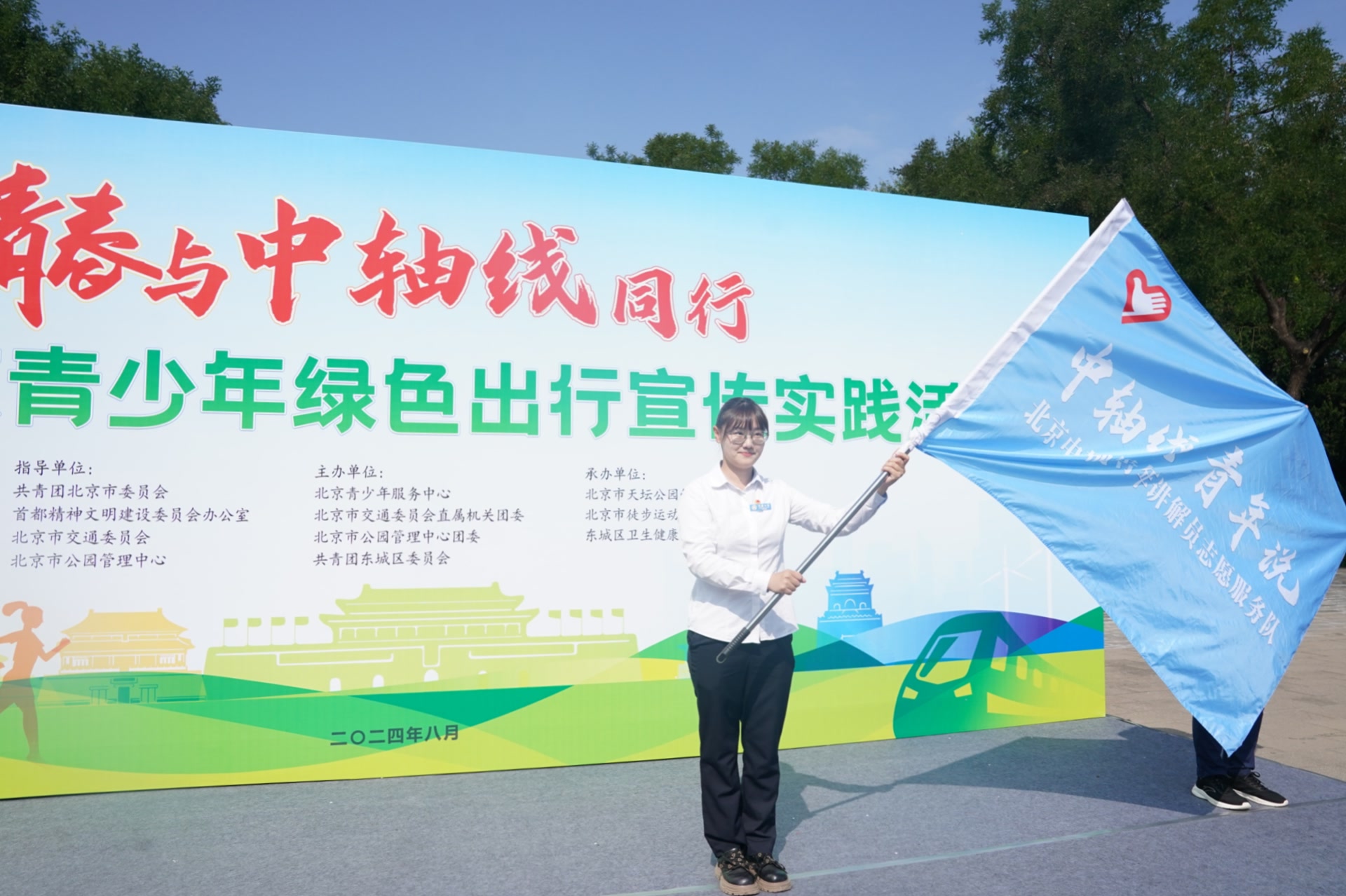 本次活动由北京团市委、首都文明办、北京市交通委、北京市公园管理中心指导,北京青少年服务中心联合东城团区委、东城区卫健委、天坛公园主办。活动现场,首都青年代表共同发出“青春与中轴线同行”倡议。