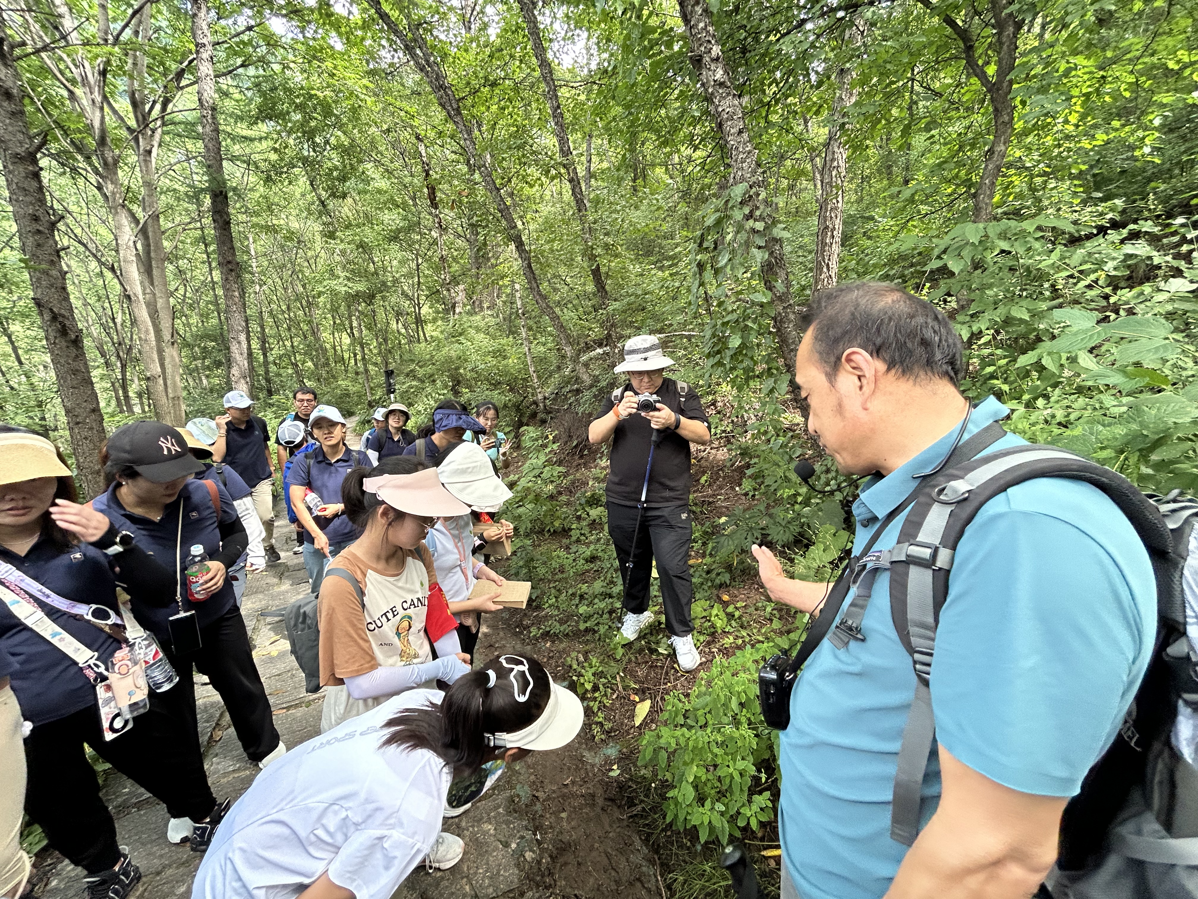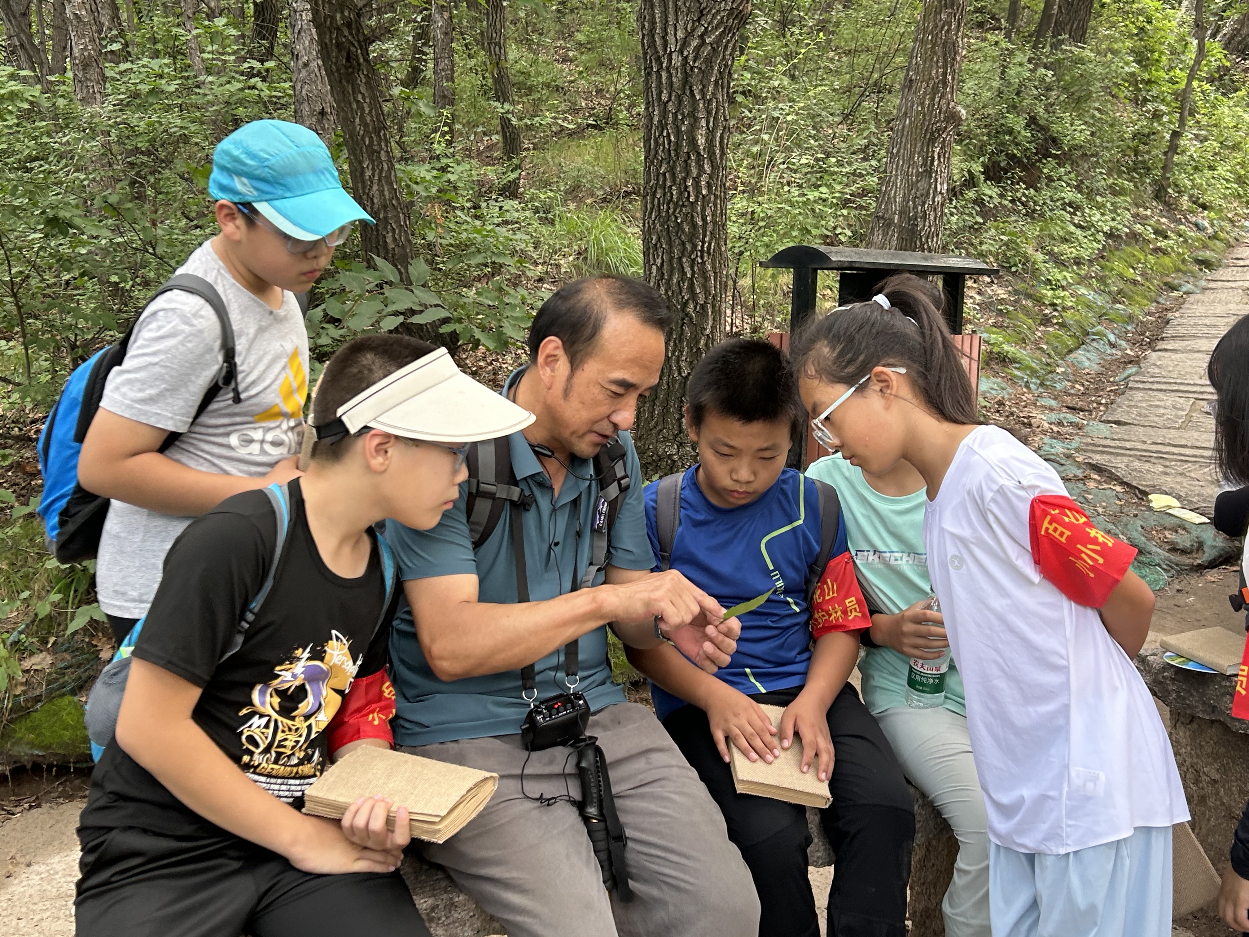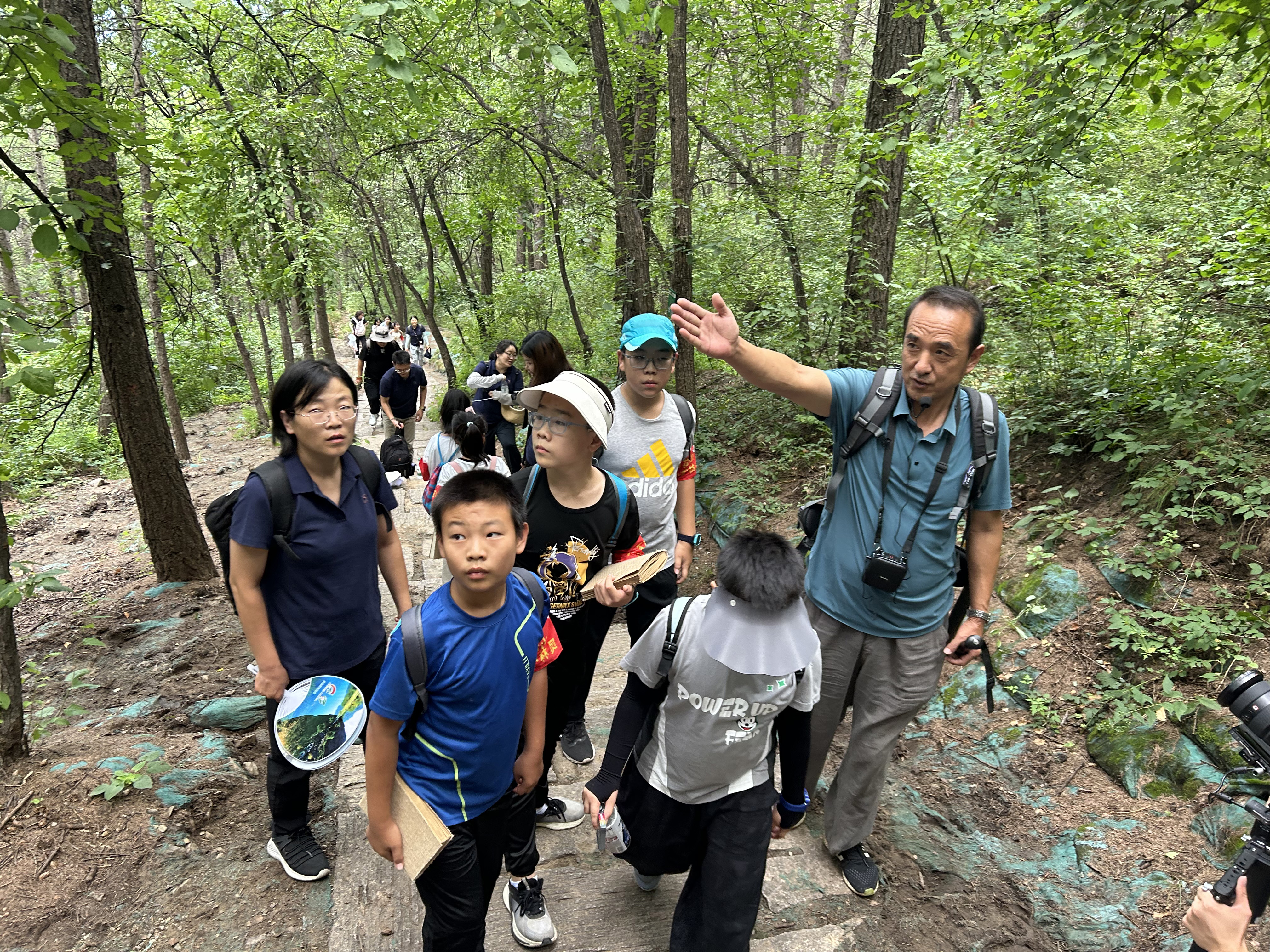 接下来,登山研学游环节使学生们得以与大自然进行亲密接触。沿着宁静的山路,工作人员指导学生们在途中识别各种植物种类,并细致观察植物的形态特征。例如华北落叶松、蒙古栎、白桦、六道木、黄精、玉竹等珍稀保护植物。通过登山研学之旅,学生们深刻领悟到生物多样性的重要性和价值,进一步加深了对生物多样性的理解。