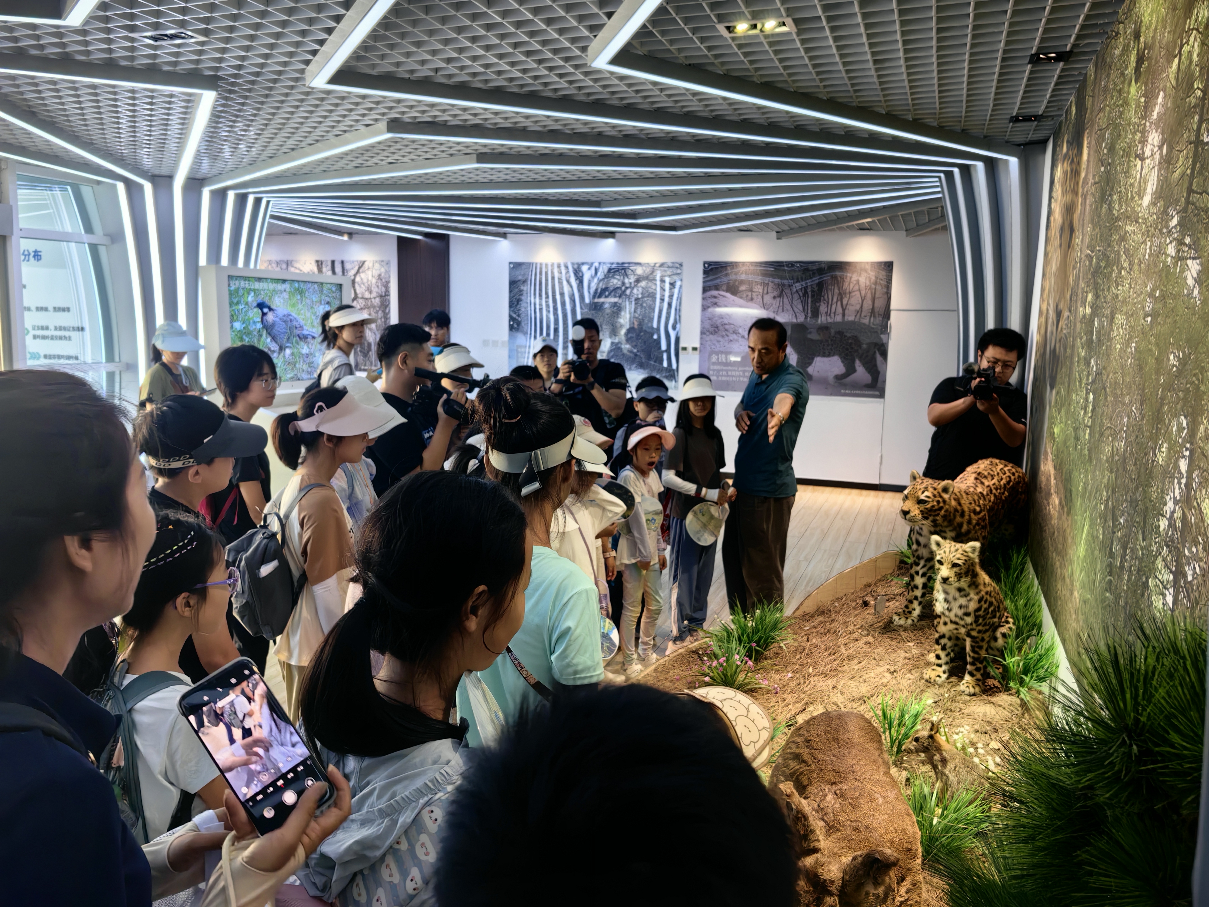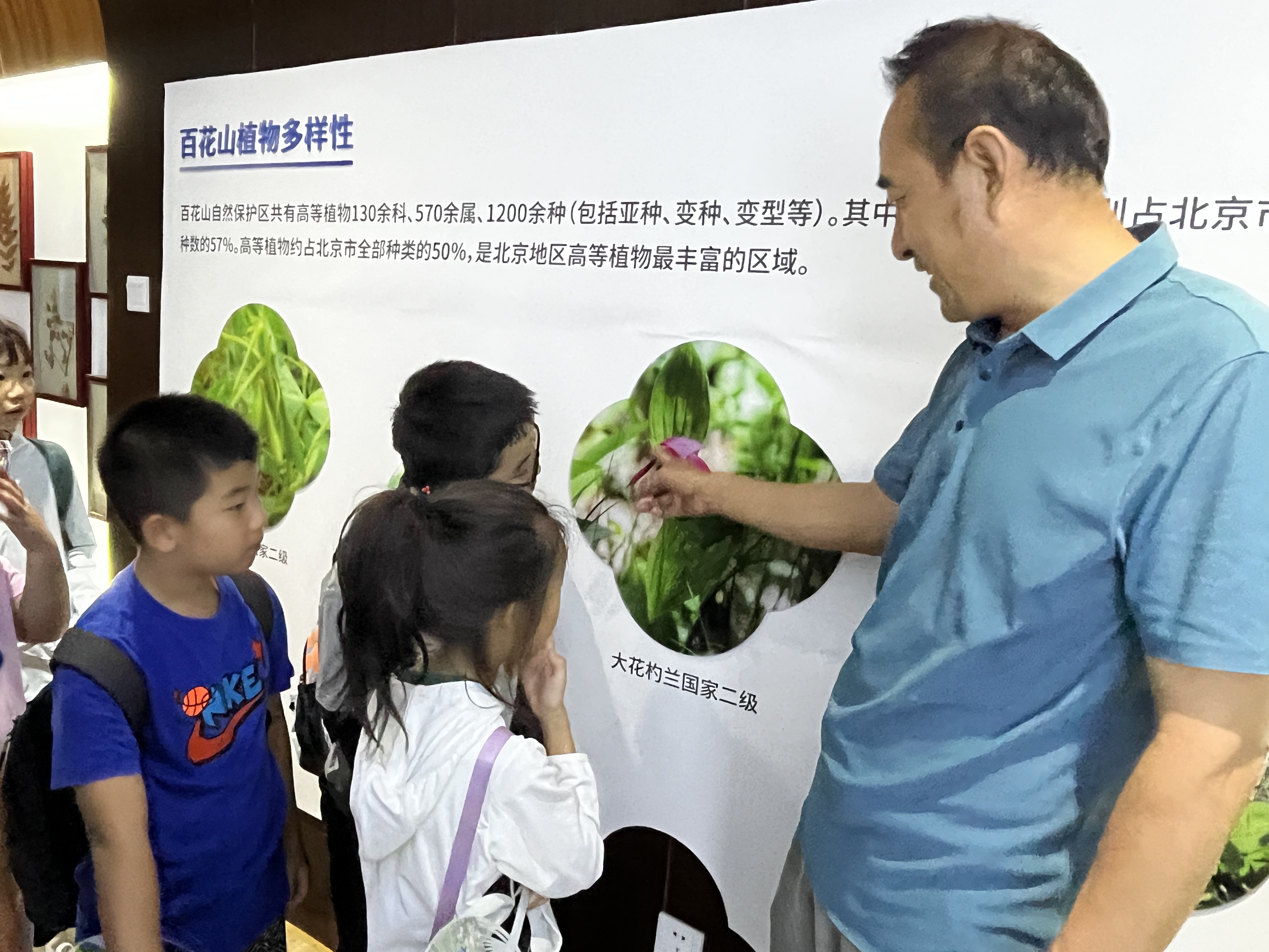 活动伊始,学生们在工作人员的引导下,满怀热情地踏入了门头沟区生物多样性科普教育基地。通过生动的展板、栩栩如生的野生动物和昆虫标本以及精彩的多媒体演示,学生们得以直观地观察到百花山保护区特有的生态系统和众多珍稀物种。学生们全神贯注地倾听工作人员的讲解,对诸如百花山葡萄、大花杓兰、野大豆、黄檗等重点保护植物有了更深刻的理解,能够有效地激发了学生们的学习热情,促使学生们认识到保护自然环境的重要性。