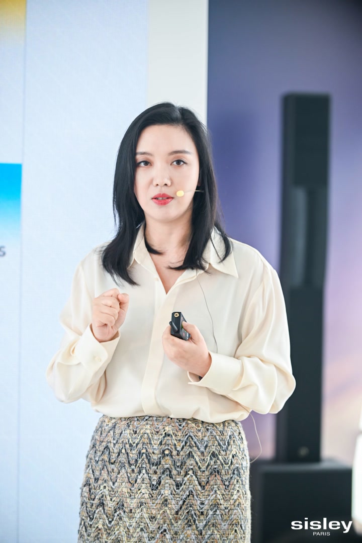 在发布会现场,与会嘉宾们聆听了法国希思黎中国区培训总监王晶晶老师的讲解,深入了解这款柔软丝滑的全新奢华日间防护精华乳的独特之处。