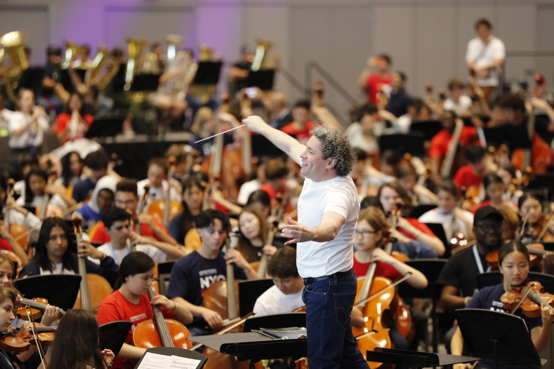 据悉,今年“WOW!世界青年管弦乐团周”共邀请了全球五大洲近40个国家的7支乐团,在举办7场音乐会的同时,“祈愿我们的世界”“奥林匹克音乐大炫技”“开放舞台”等丰富的交流活动密集开展。8月5日,贾维茨会议中心里,著名指挥家古斯塔沃·杜达梅尔执棒700余位青年乐手,汇成“五洲青年大合奏”的澎湃声浪,约翰·威廉姆斯《奥林匹克号角与主题》、吉纳斯特拉《南美大牧场》选段、贝多芬《第七交响曲》第四乐章化作无形的纽带,让不同种族、肤色、语言、文化背景的青年在音乐的怀抱里同频呼吸。