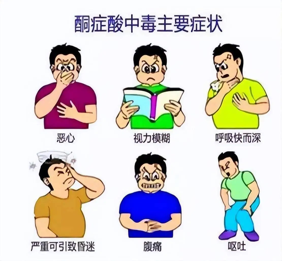 及时就医:一旦出现恶心、呕吐、呼吸有烂苹果味、意识障碍等症状,应立即就医。
