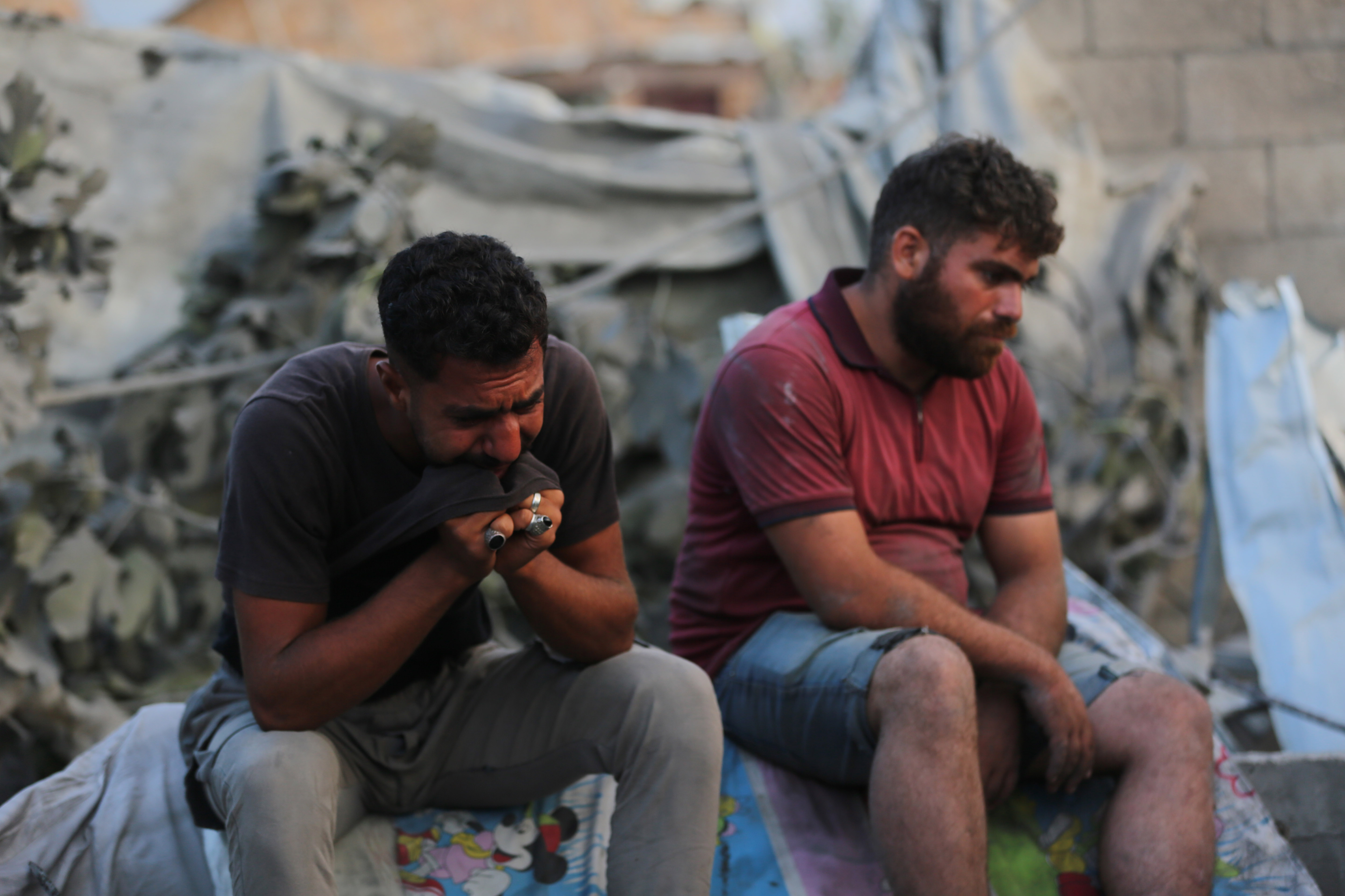 8月17日,在加沙地带中部扎韦达地区,一名男子为遇难者哭泣。新华社发(马尔万·达乌德摄)