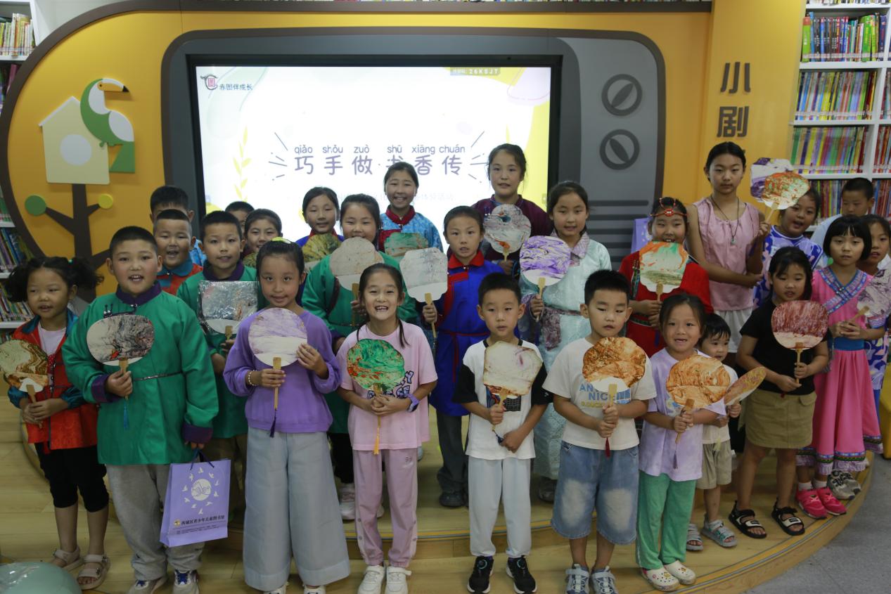 此次“春雨工程”赤峰行的志愿者们走进赤峰市图书馆、红山文化博物馆玉龙书屋,举办了多场内容丰富的业务分享、调研学习和形式多样的体验活动。首都图书馆专家志愿者伊楠以《标点符号——朗诵表达的重要参考》为题开展讲座。首都图书馆专家志愿者王寒雪带领赤峰市图书馆的小读者们共读绘本《彩虹色的花》,在阅读中体会乐于助人精神带来的魅力。在“巧手做·书香传”中华传统文化志愿服务体验活动中,小读者们参与了“守护平安—彩绘北京非遗兔爷”创意彩绘活动和“幻彩世界—漆扇DIY制作”活动,感受非遗的魅力之魂。