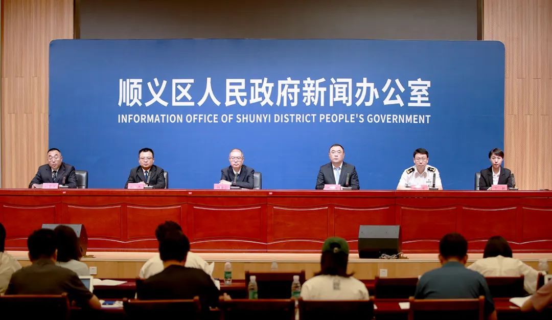 8月21日上午,顺义“两区”工作领导小组办公室、顺义区人民政府新闻办公室组织召开顺义区“两区”建设第二十一次新闻发布会。区委宣传部副部长闫震宇主持。区商务局党组书记、局长杨蓬勃,区生态环境局党组书记、局长陈笛,首都机场临空经济区管理委员会政策研究与制度创新处处长郑杰,天竺地区办事处副主任、副镇长卞颖,北京海关所属天竺海关副关长张琳出席,介绍“两区”建设相关进展成效。