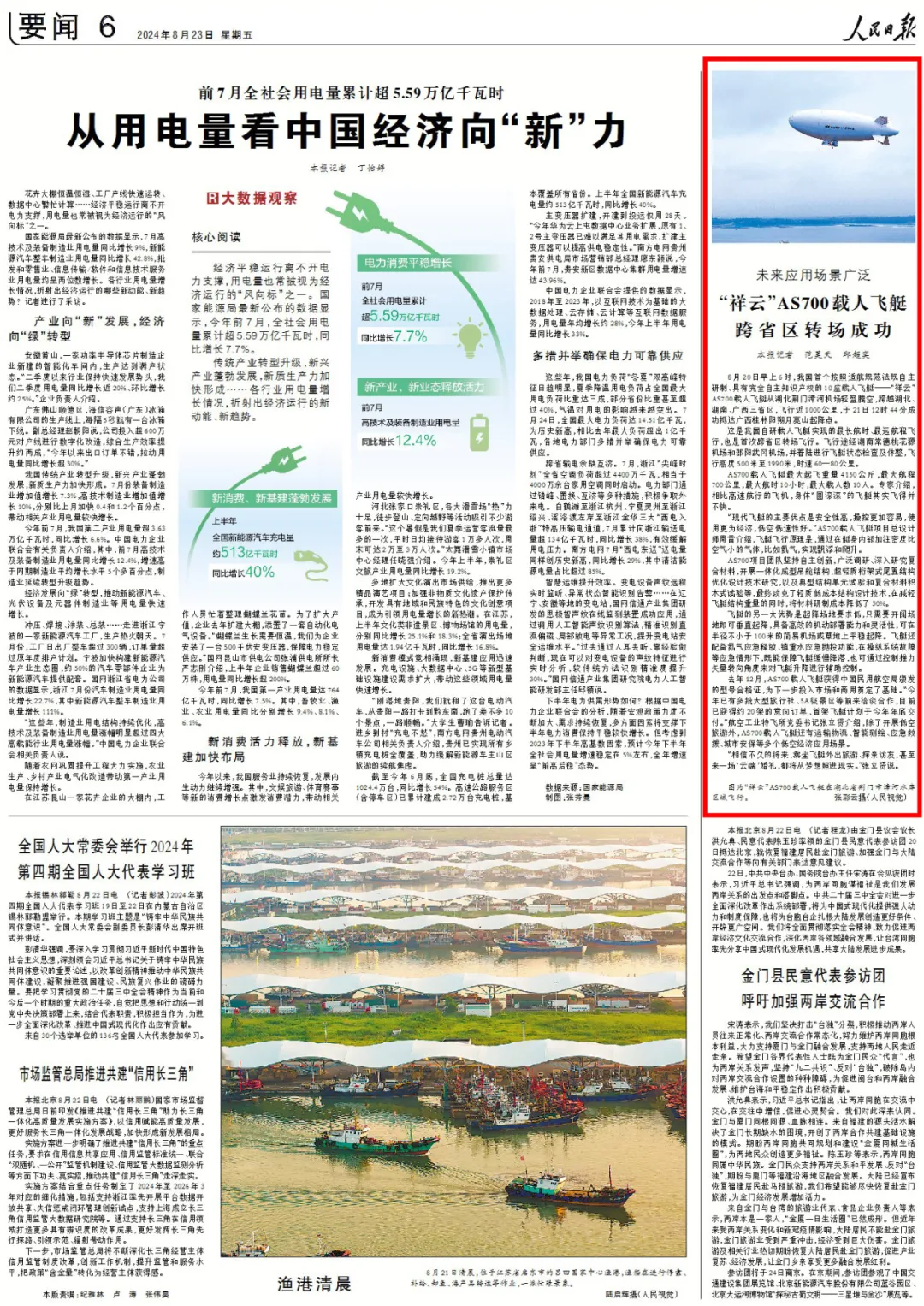 去年12月,AS700载人飞艇获得中国民用航空局颁发的型号合格证,为下一步投入市场和商用奠定了基础。“今年已有多批大型旅行社、5A级景区等前来洽谈合作,目前已获得约20架的意向订单,首架飞艇计划于今年年底交付。”航空工业特飞所党委书记张立贤介绍,除了开展低空旅游外,AS700载人飞艇还有运输物流、智能测绘、应急救援、城市安保等多个低空经济应用场景。