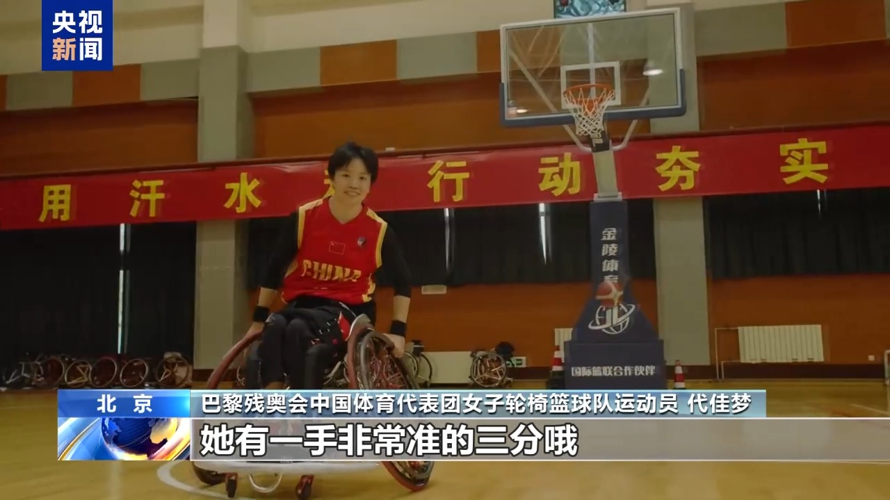 巴黎残奥会中国体育代表团女子轮椅篮球队运动员 代佳梦:大家好,我叫代佳梦,今年29岁。因为来队里的时间比较长,所以我的队友们都称呼我老代,今天就由老代带领大家认识一下我的队伍。我们队伍由12个人组成,我们来自全国各地,其中最小的运动员是张美美,她今年21岁,在队伍里担任小前锋一职。