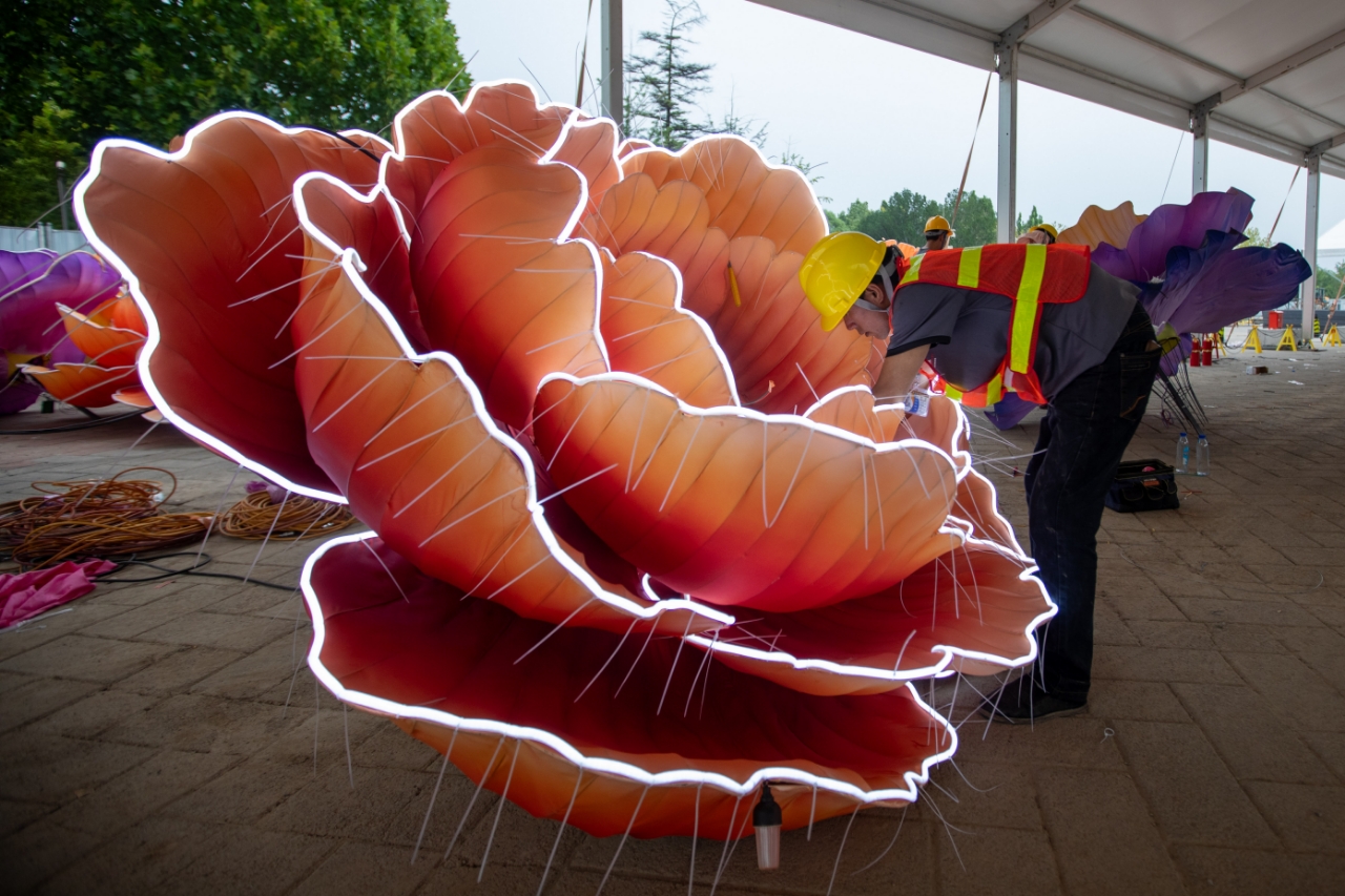 除了3号门广场的节日欢歌主题区,园博园其他各处的安装施工也正在紧锣密鼓地进行。本次灯会主办方京彩公司工作人员表示,目前各类提前制作好的彩灯已被运至园中等待安装,“京潮流彩”和“七彩童梦”主题区的部分树木亮化工程也已完成,将于9月14日准时与广大市民见面,让我们拭目以待!