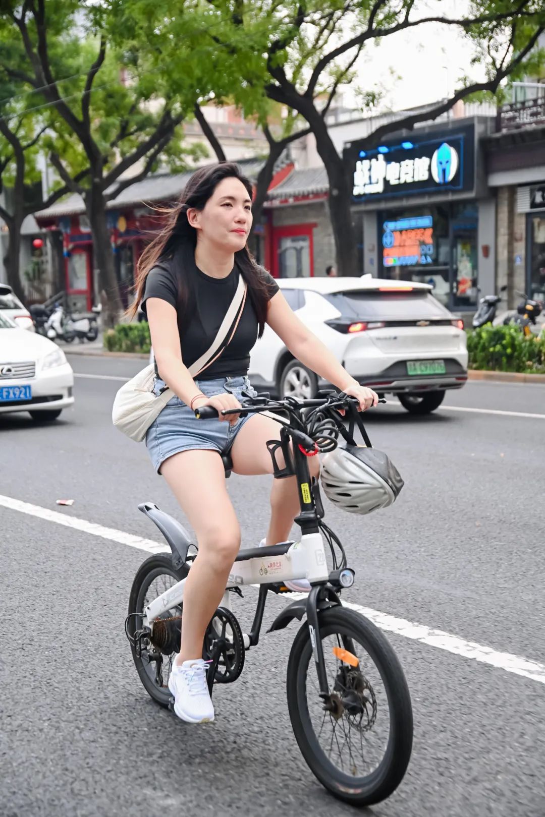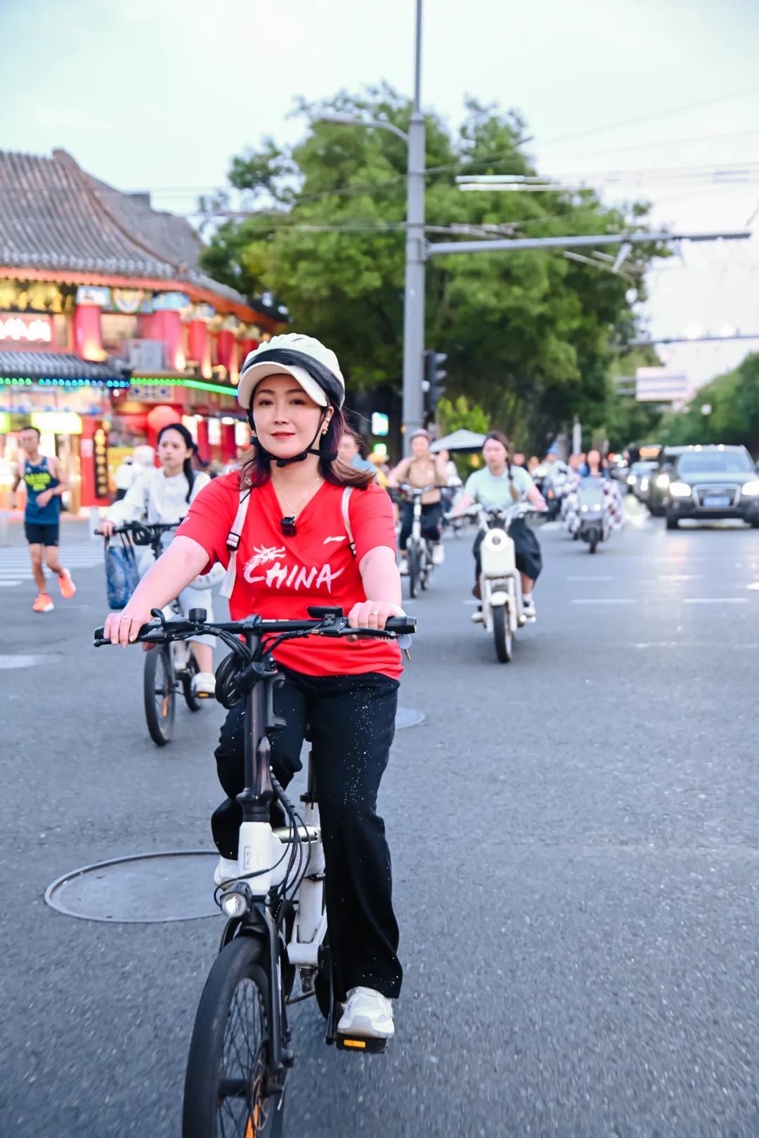 中国首个女子自由体操世界冠军奎媛媛参加骑行。