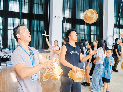 营员在体验扔帽子游戏。