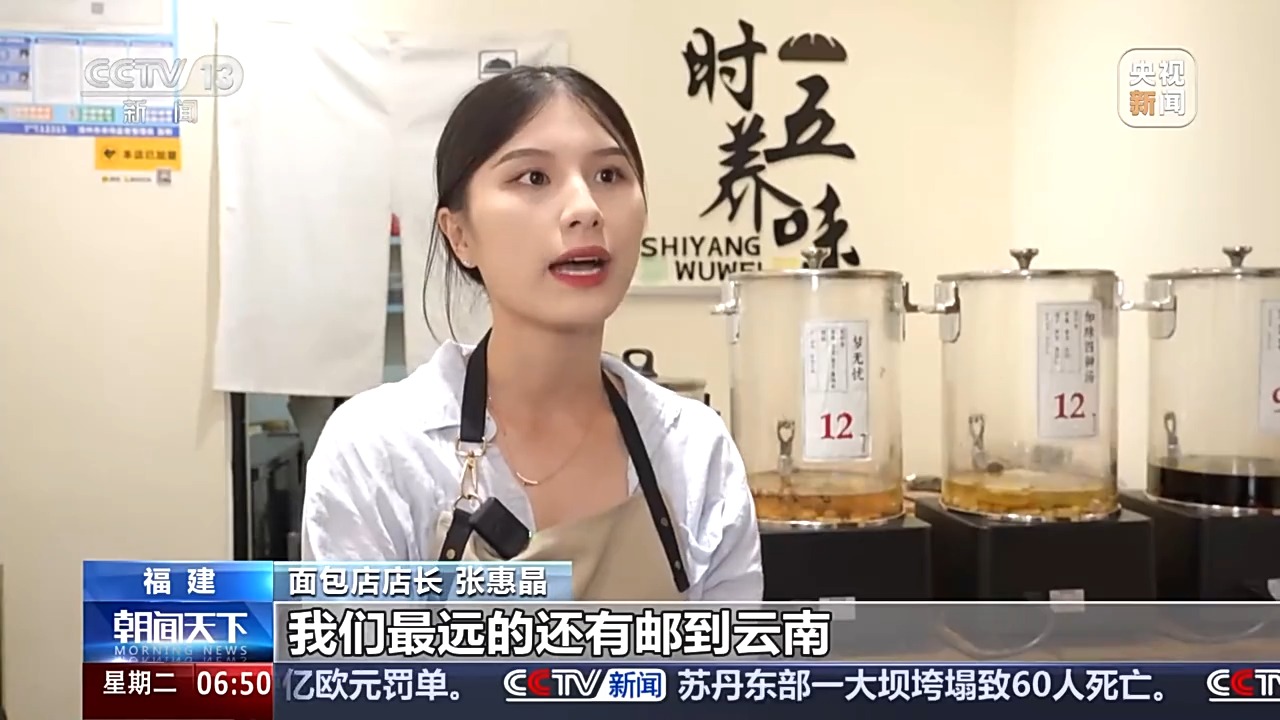 面包店店长 张惠晶:我们现在也有邮寄到一些像附近的县城厦门、泉州,我们最远的还有邮到云南。这些养生面包其实还是很受年轻人喜欢的。