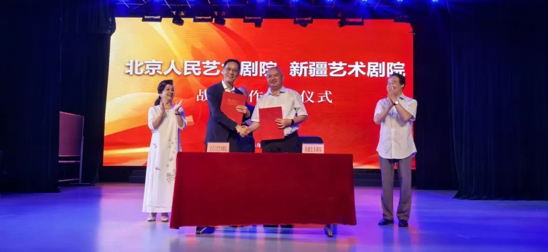 8月23日,北京人艺与新疆艺术剧院签署战略合作协议,并赠送了北京人艺艺术理论书籍。协议约定,双方围绕艺术创作、文化交流、人才培养多方面开展紧密合作,充分发挥双方优势,引导鼓励艺术创作人员共同挖掘具有地方特色、民族特色的文化艺术资源,开展剧目创作活动,积极推进反映和弘扬中华优秀传统文化、民族大融合的重大题材原创作品的产生,以演出为载体,让更多观众感受丰富多元的艺术体验。