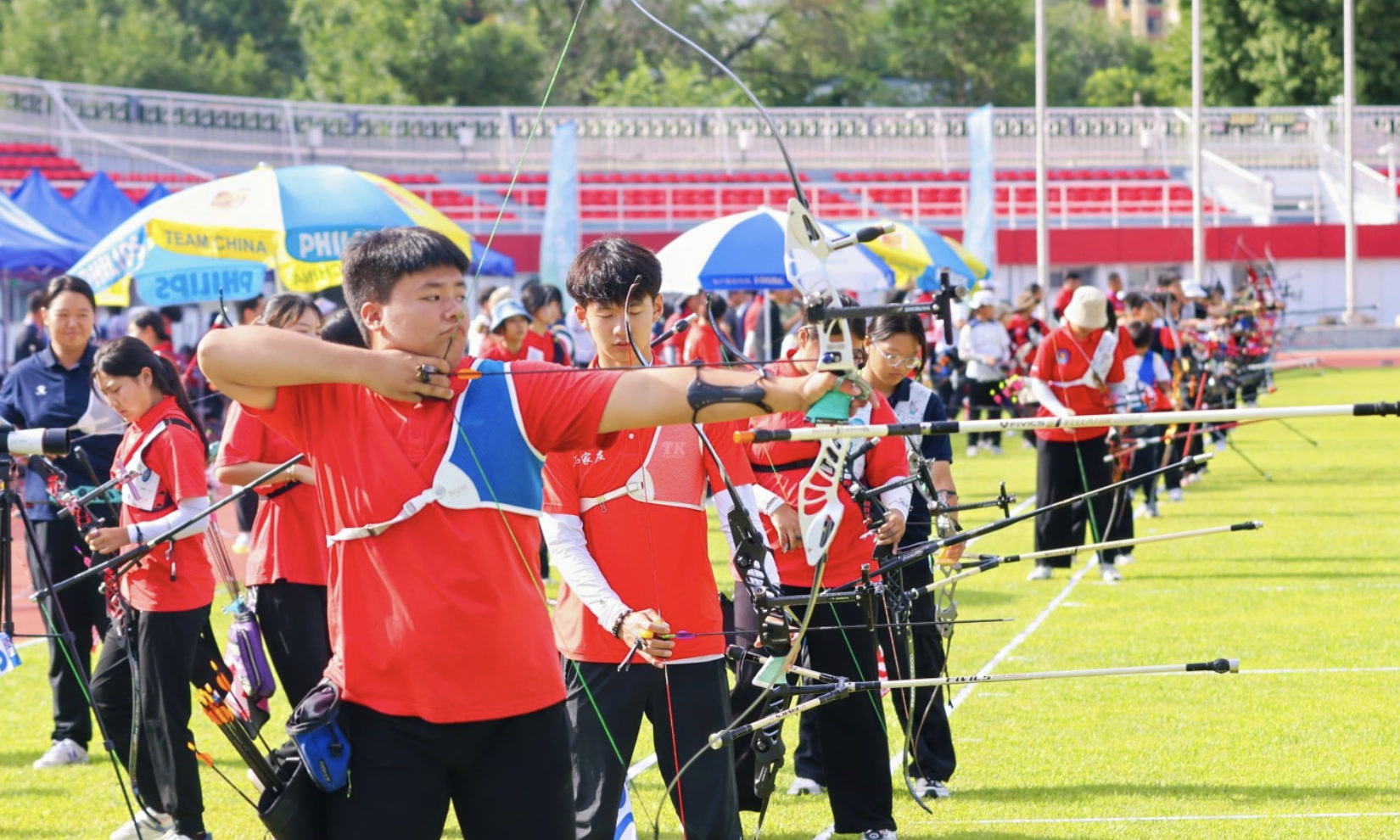 河北邯郸射箭队本次参加了反曲弓全部五个年龄组比赛。总教练张晓磊介绍,该队近年来发展得不错,吸引了不少低年龄段的孩子参与。这次比赛,她们带着多名小队员前来,重在感受全国性赛事氛围。“这样的机会还是比较难得的,是一次很好的锻炼。尤其是这次还设置了团体赛,这也是奥运会设项的。整体来说非常有锻炼价值。”张晓磊说。