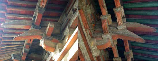 △献殿斗栱外跳(左)圣母殿副阶斗栱外跳(右)