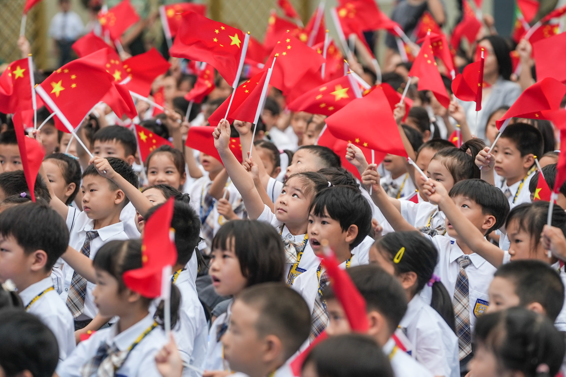 北京教育学院附属中学的开学典礼以“‘小而精’引领高质量发展,‘阳光教育’谱写时代新篇”为主题,全体师生高唱国歌,每一句都饱含着对祖国的热爱。北京小学红山分校将开学典礼主题“党心照耀童心 点亮强国梦想 争做追光少年”与弘扬爱国主义精神相结合,学生深情诵读“见字如面·我给祖国写封信”作品,爱国情怀流于字里行间,令人动容。育翔小学的开学第一课上,北斗系统工程专家受邀带领学生领略大国重器魅力,以“追强国之光,立成长之誓”为指引厚植学生家国情怀。