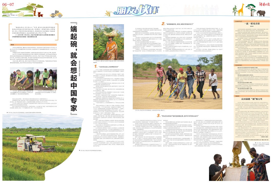 在塞内加尔桑加勒卡姆村,村民摘下最长的茄子、最大的白菜、最红的辣椒,按照湖南菜的做法和我们分享。在冈比亚中河区,湖南农业专家和当地农民一起坐在收割机上收稻谷,周边许多农民慕名而来,只为见证喜悦的丰收和现代化作业场景。