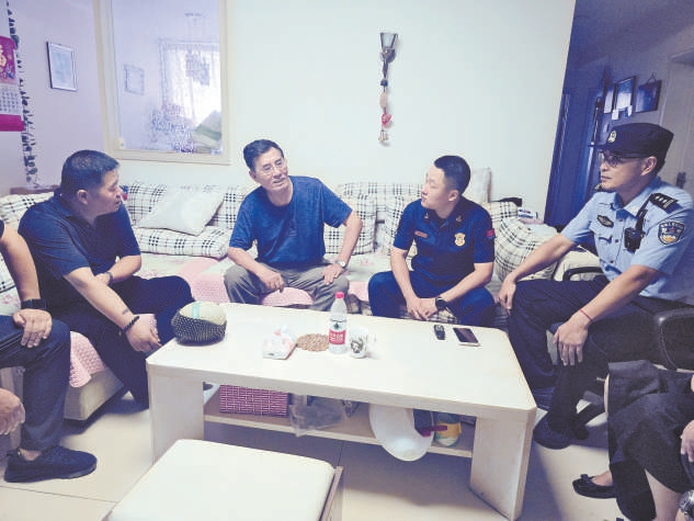 昨天,消防员和民警来到陈大爷(左二)家表示慰问和感谢。