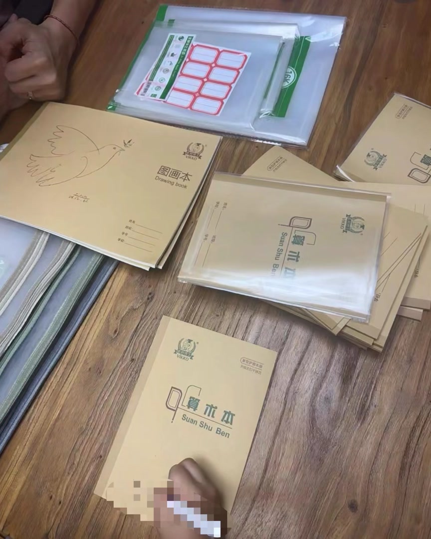 李女士的孩子刚上小学一年级,开学后孩子领了十多本新书回了家,“老师在群里发通知,第一条就是要求‘新书包书皮’。”李女士说,她买的是自粘式包书膜,折叠、裁剪、粘贴、压边……一不小心书皮中间留下气泡还需要返工。当天晚上,李女士忙活了两三个小时,才把十多本课本和十多本作业本都包好了皮。