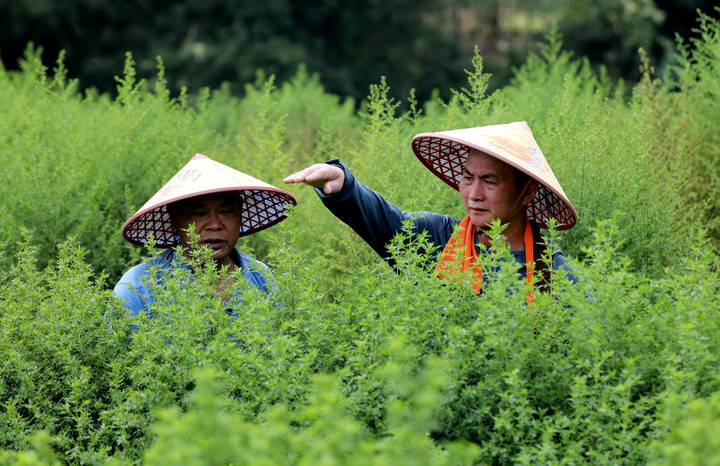 南国八月,冒着高温酷暑,广西柳州市融安县的村民们忙碌地收割青蒿。这些青蒿晒成干草后将被提取出青蒿素并制成药物,运往万里之遥的非洲大陆,帮助非洲人民对抗疟疾。