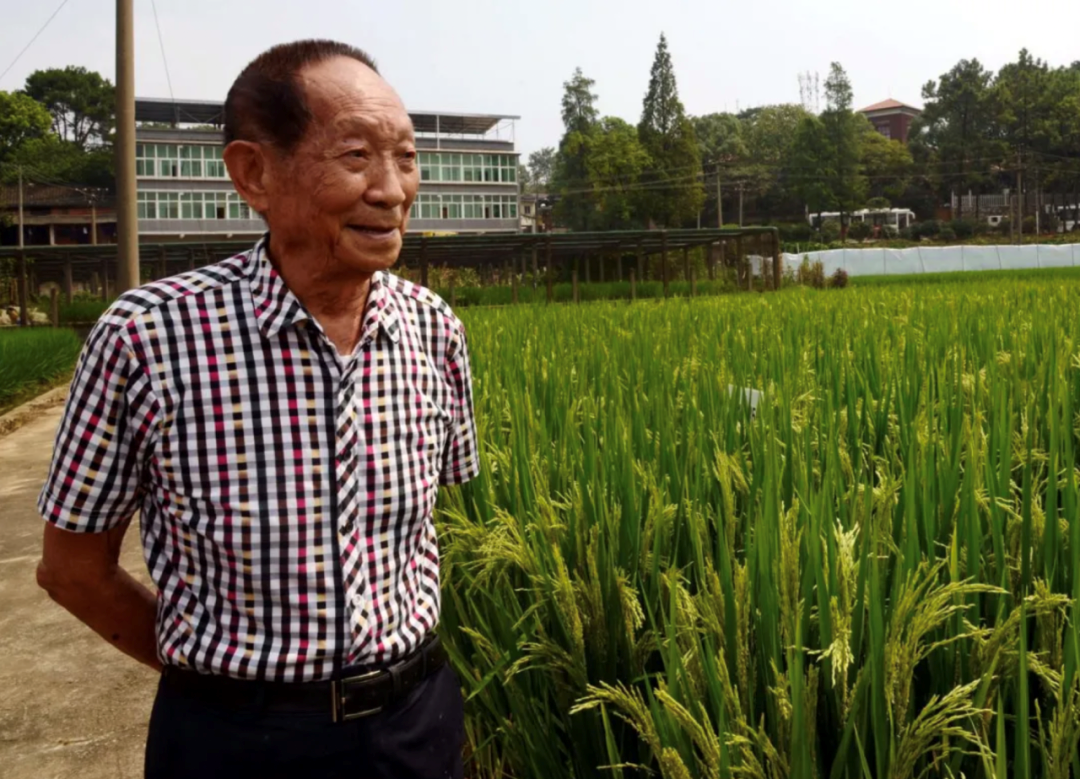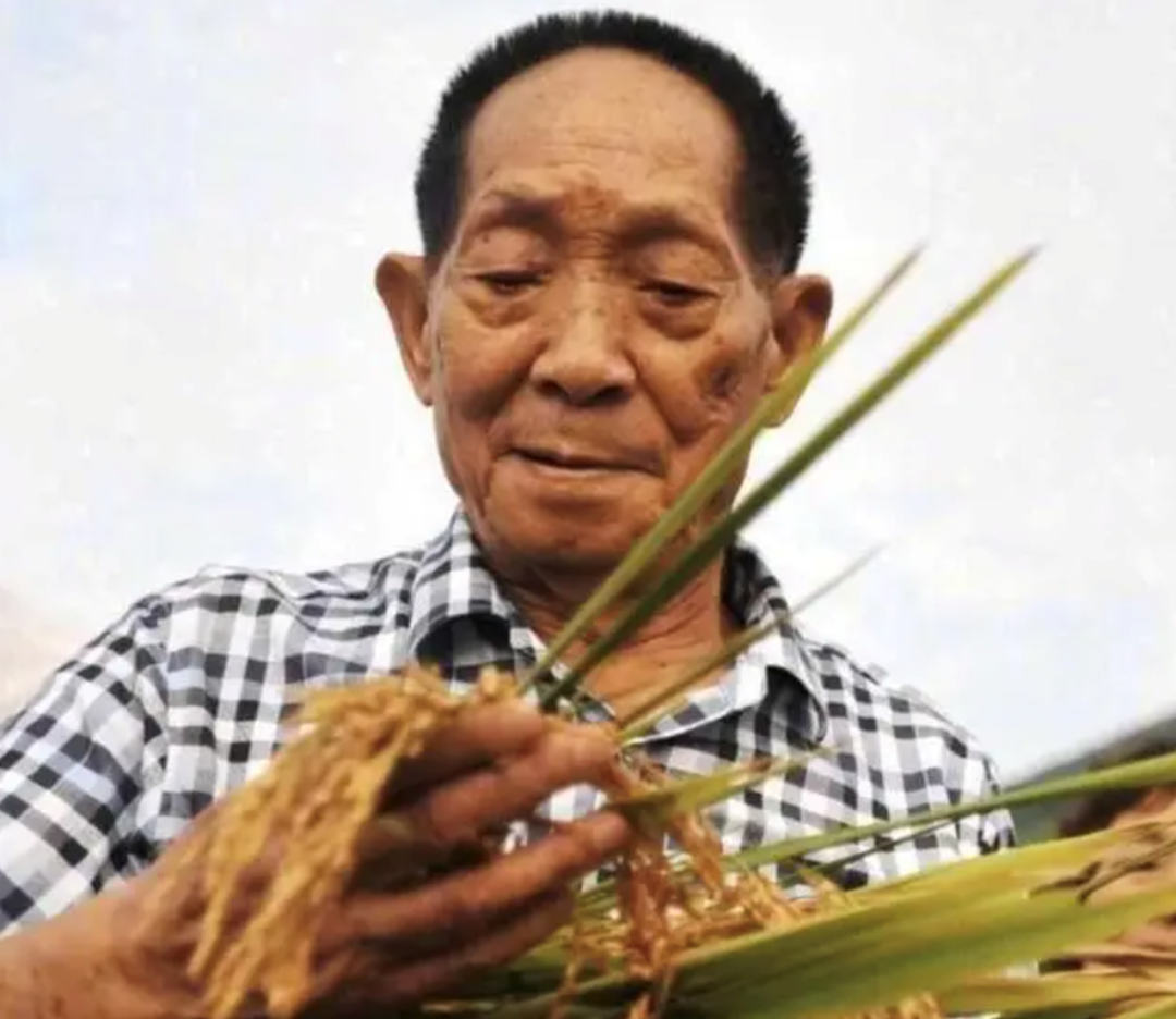 第一个梦叫作禾下乘凉梦,梦见我这个试验田的水稻长得比高粱还高,穗子有扫帚那么长,籽粒有花生米那么大。我好高兴,我就坐在我的稻穗下乘凉。