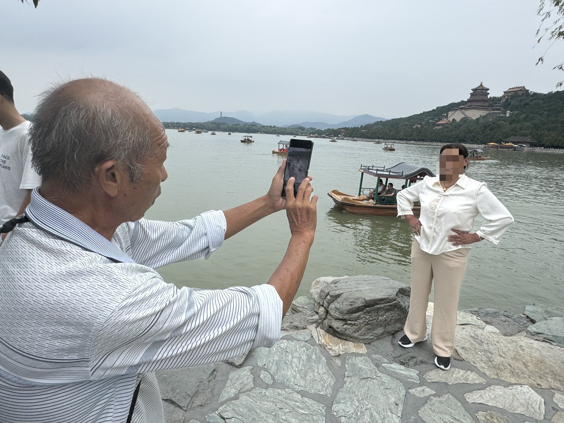 “照相谁都会拍,但拍照有讲究,很多人拍不好。”大爷说,他今年75岁了,家就住在海淀,平时没别的爱好,退休后就爱到处拍照。“颐和园离家近,天气好的时候我每天坐着公交就来了,待到下午才走。”大爷说,好多外地人来北京旅游一趟,要是照片没拍好也挺可惜的,所以他就主动上前帮人拍几张。“拍完以后大家都夸我,我心里就觉得舒服、高兴!”大爷说。