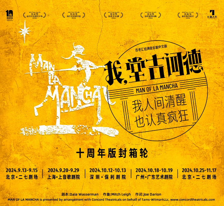 剧目名称:七幕人生出品 百老汇经典音乐剧《我,堂吉诃德》十周年版封箱轮 北京站