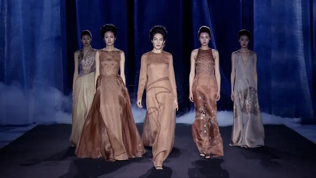 2024年3月,“衣者·天地形”李薇高级时装发布会举行 图为本次大秀的“染、绣、锦”三个系列
