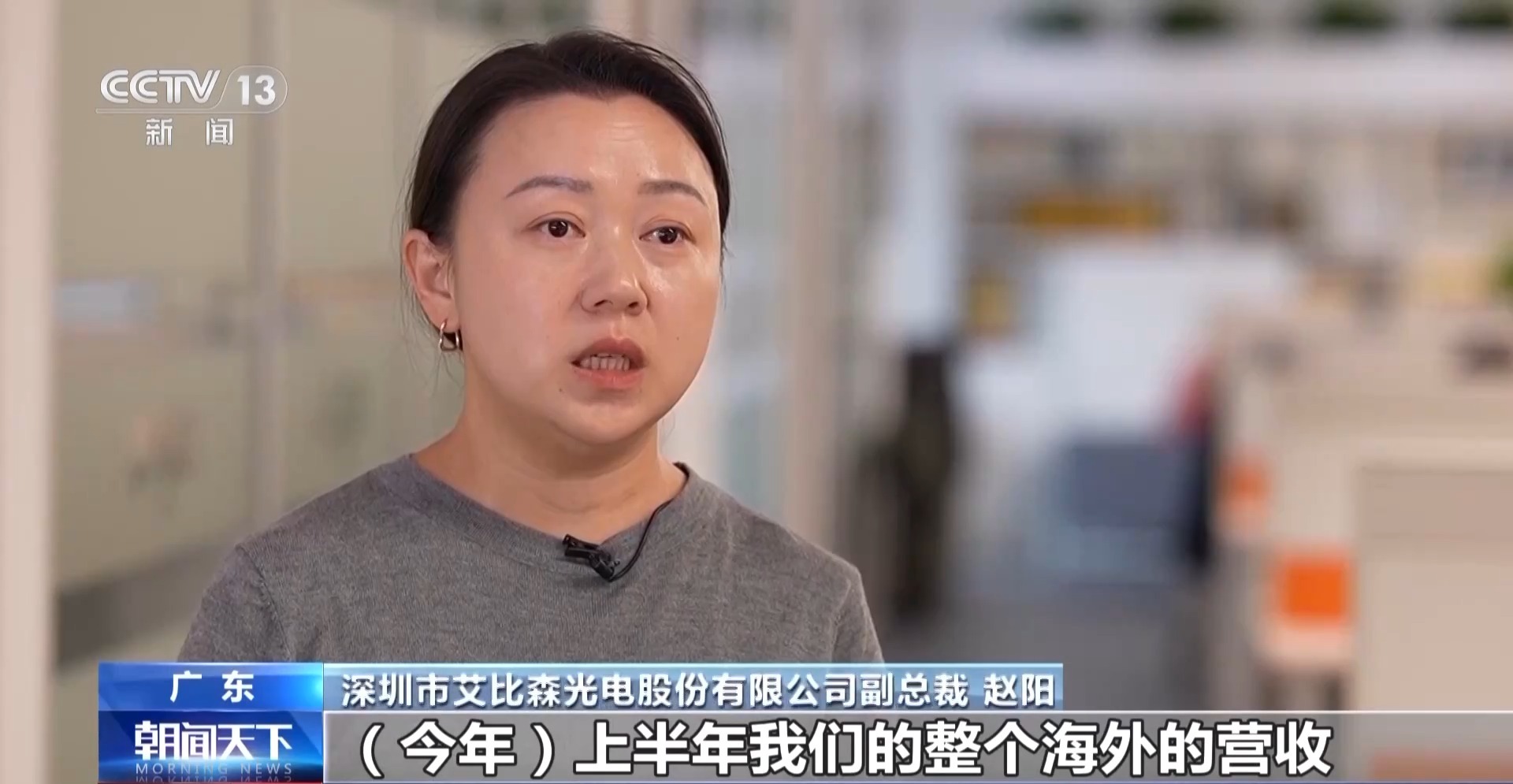 深圳市艾比森光电股份有限公司副总裁 赵阳:今年上半年,我们的整个海外的营收大概有14亿元,比往年同比增加了24%左右。