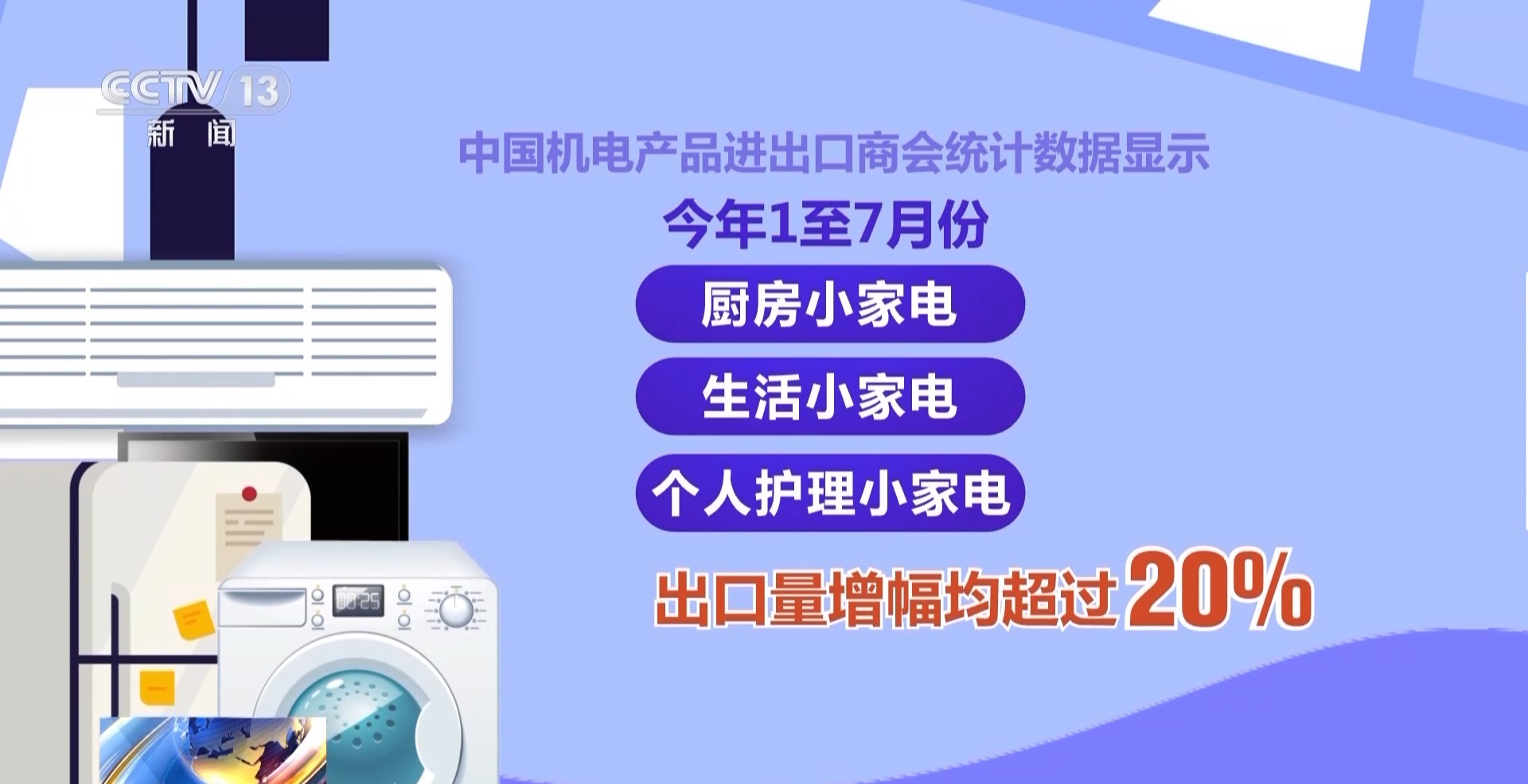 中国机电产品进出口商会统计数据显示,今年1-7月份,我国厨房小家电、生活小家电和个人护理小家电的出口量增幅均超过20%。