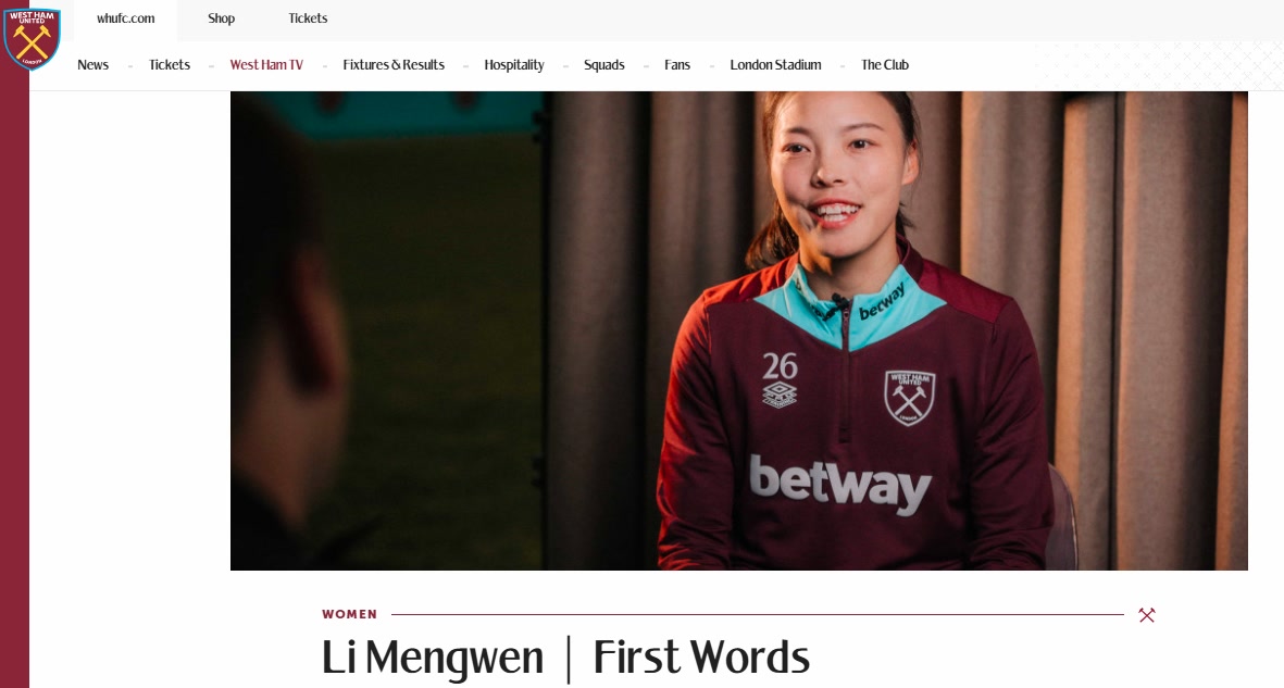 北京时间9月14日,英超西汉姆联俱乐部宣布,中国女足队员李梦雯租借加盟。