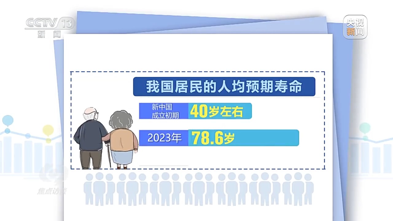 70多年来,我国的人均寿命、老龄化程度和劳动力的情况都发生了巨大的变化。据统计,我国居民的人均预期寿命已经从新中国成立初期的40岁左右提高到2023年的78.6岁。我国老龄化程度不断加深。到2023年底,我国60岁及以上人口2.97亿人,占比21.1%。据预测,2035年左右,60岁及以上老年人将突破4亿,占比超过30%。