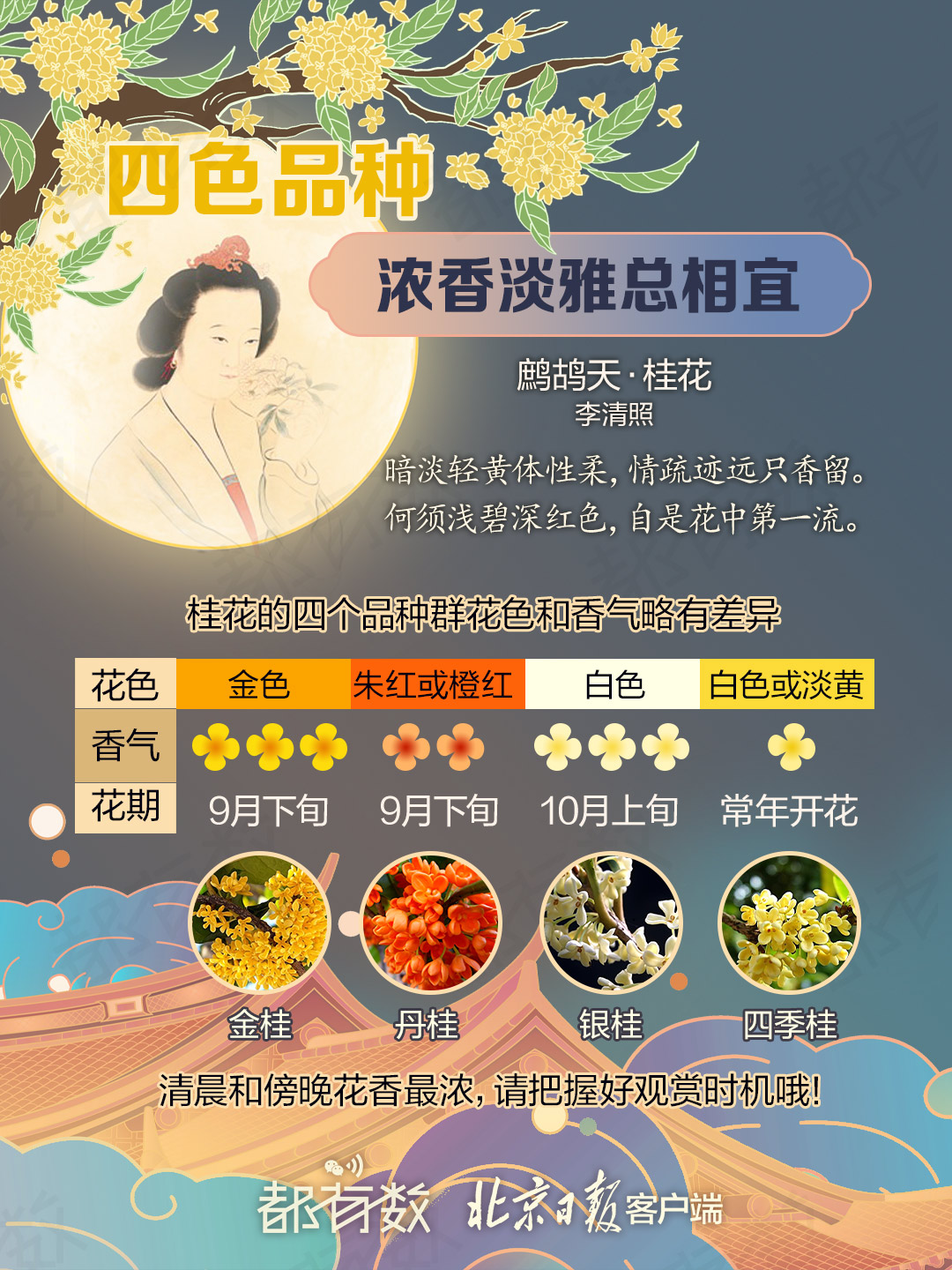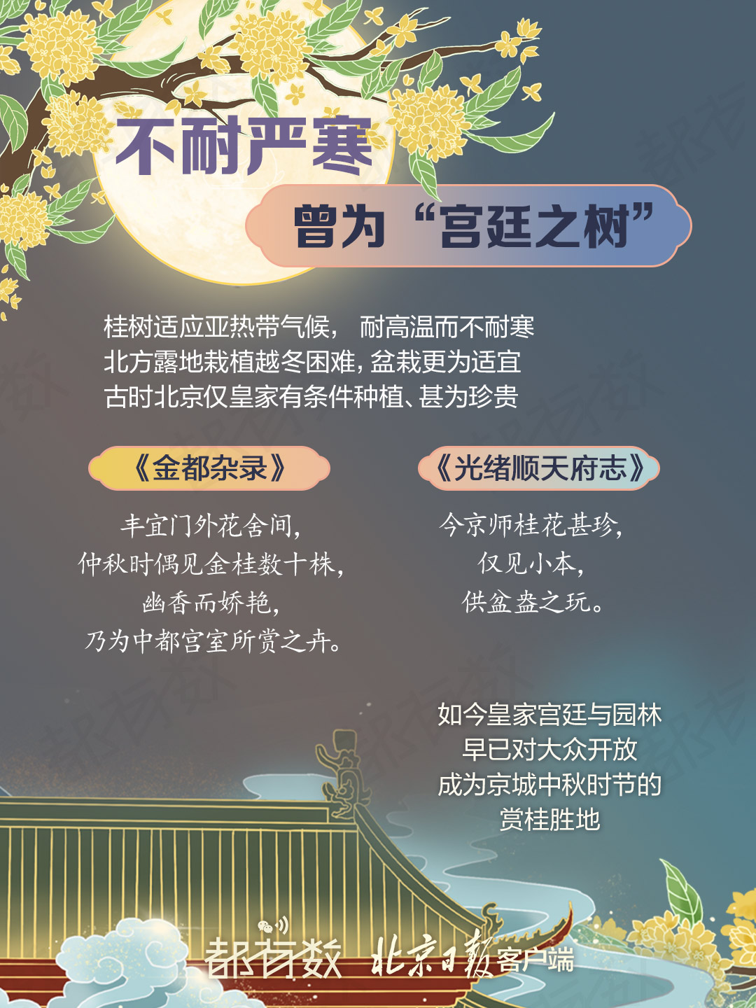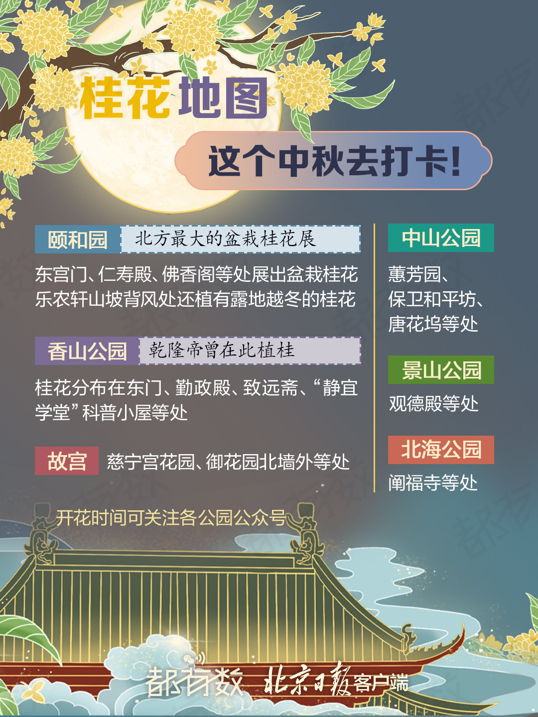 中秋前后是观赏桂花的最佳时节,李清照曾赞桂花盛放时“梅定妒,菊应羞,画阑开处冠中秋”。这种适应亚热带气候的植物在北方栽植难度较大,在古时更是皇家专属的“宫廷之树”。这个中秋假期,北京哪些地方可以无门槛地感受馥郁的桂花香气?