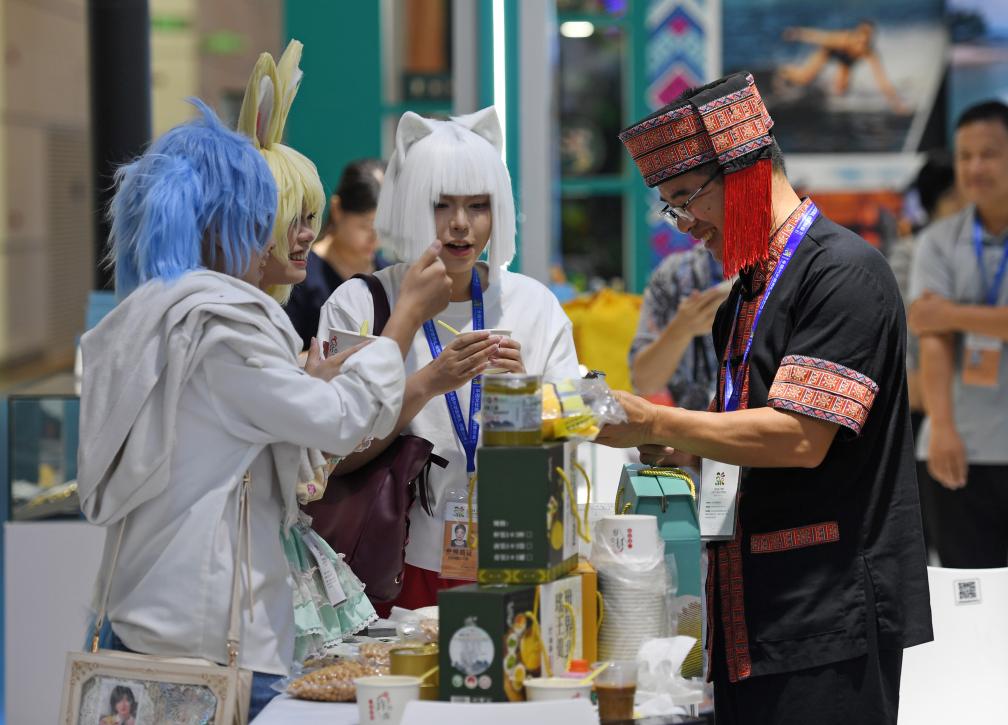 在国家会展中心(天津),与会者在2024中国文化旅游产业博览会上交流。新华社记者 赵子硕 摄
