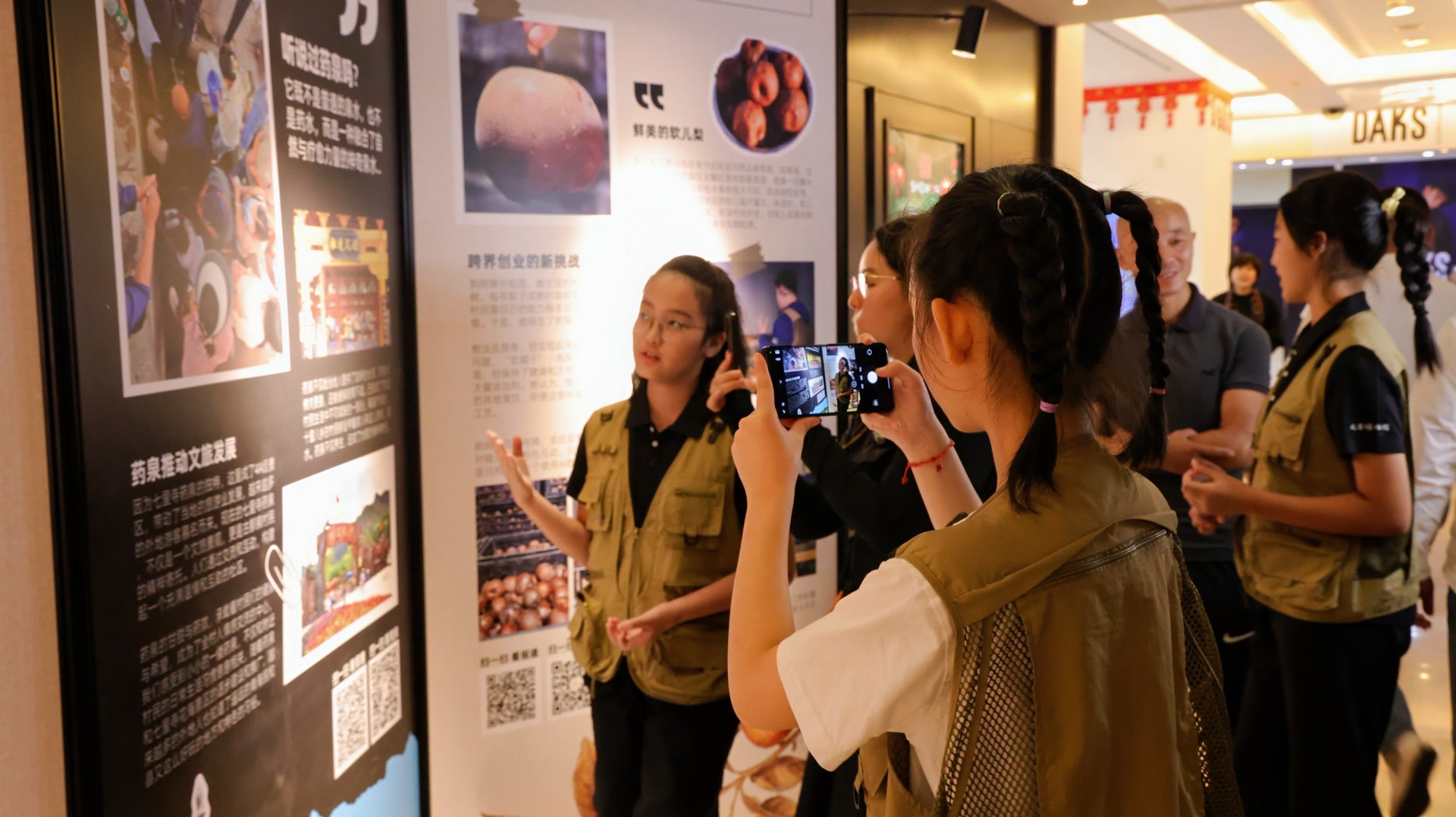 活动当天,几位少年担任主持人和串讲人讲述了本次展览的背景,介绍土族青绣的历史与传承故事、民和县秦腔戏团面临的困境,并与当地非遗产品的制作者一起,邀请市民前往展区观看介绍民和县乡情的展板。用这几位少年的话说,“走进民和,我们看到的不仅仅是美丽的山川和文化,还有当地同胞面对的困境与努力。”
