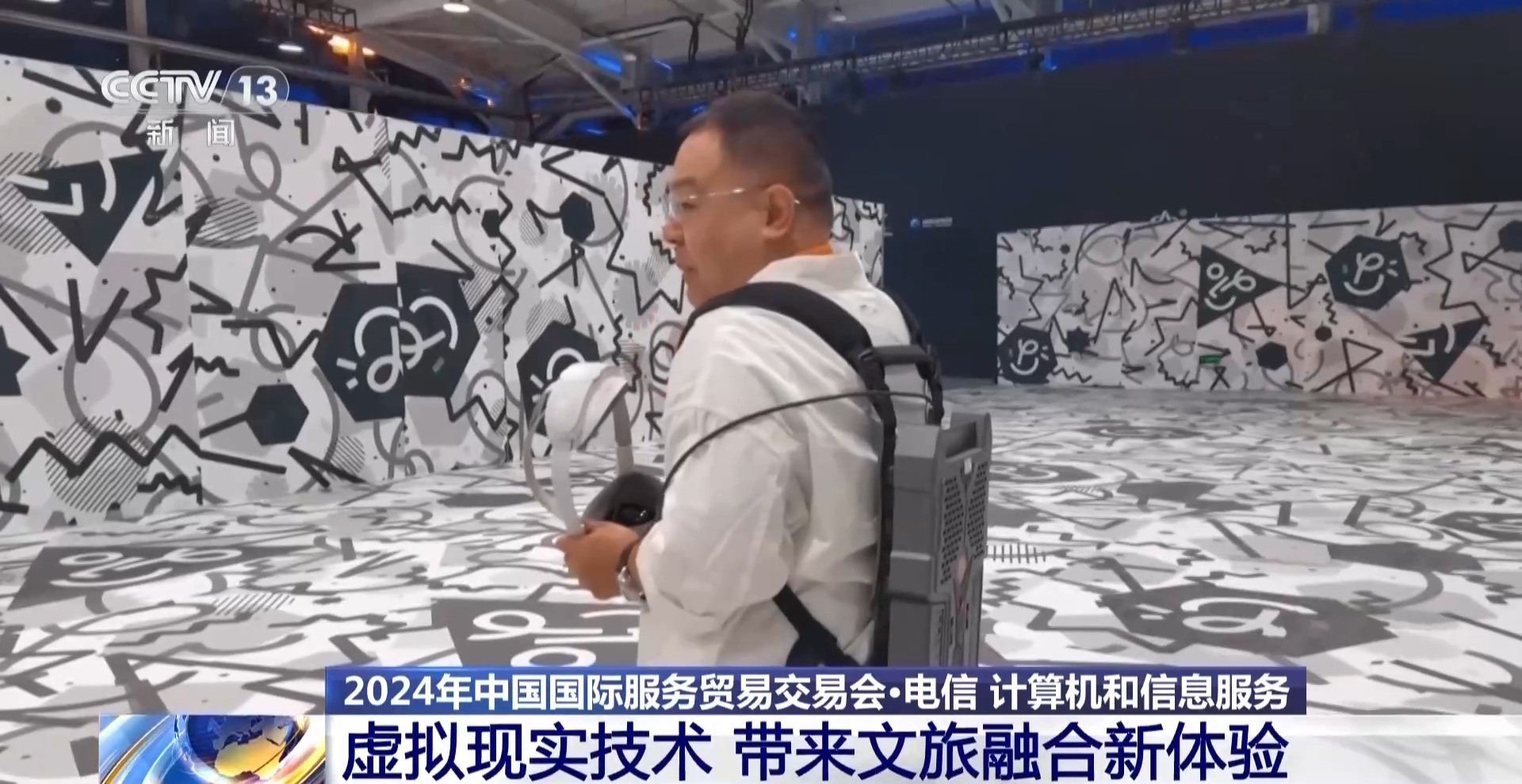 但其实这里是总台北京总站新落成的虚拟演播室,这种数字技术在电视节目中的应用当然并不新鲜,接下来我们去服贸会看一看更新、更炫酷的虚拟现实技术和应用场景。