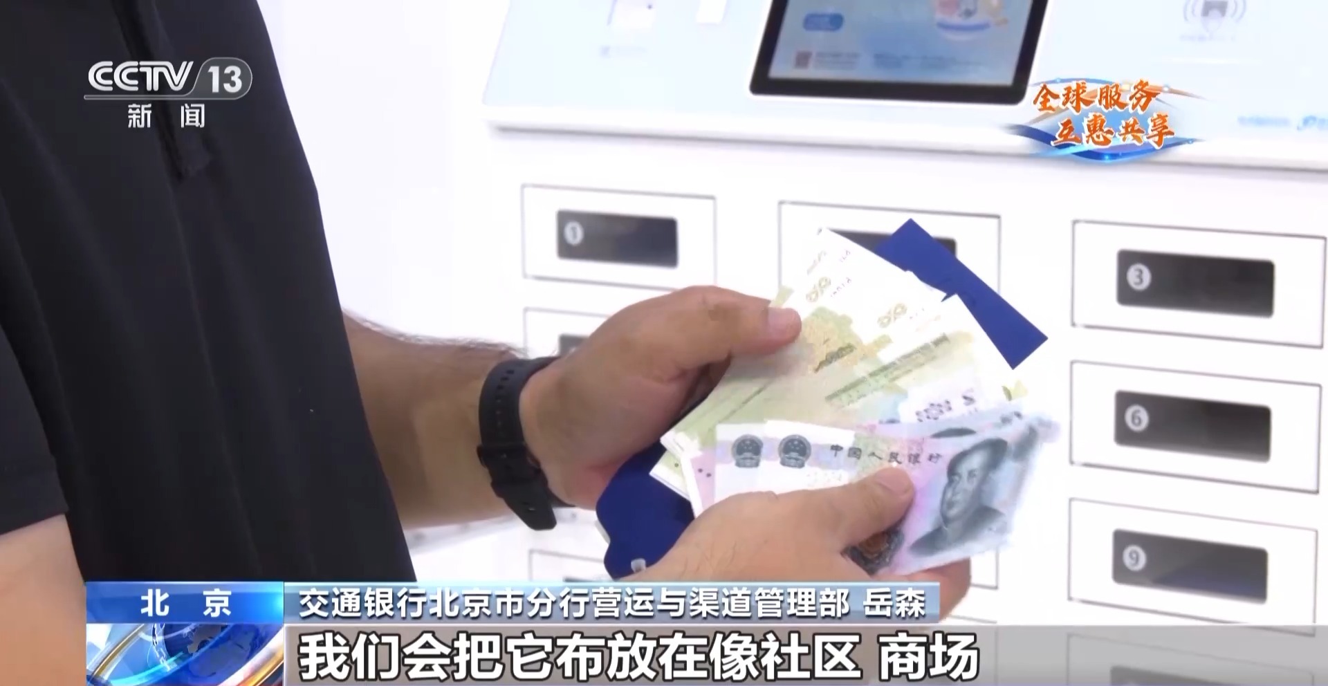 交通银行北京市分行营运与渠道管理部 岳森:我们会把它布放在像社区、商场、政务服务大厅等现金使用场景比较多的地方,方便老年人包括境外来华人士,可以更便捷地自助兑换现金零钱。