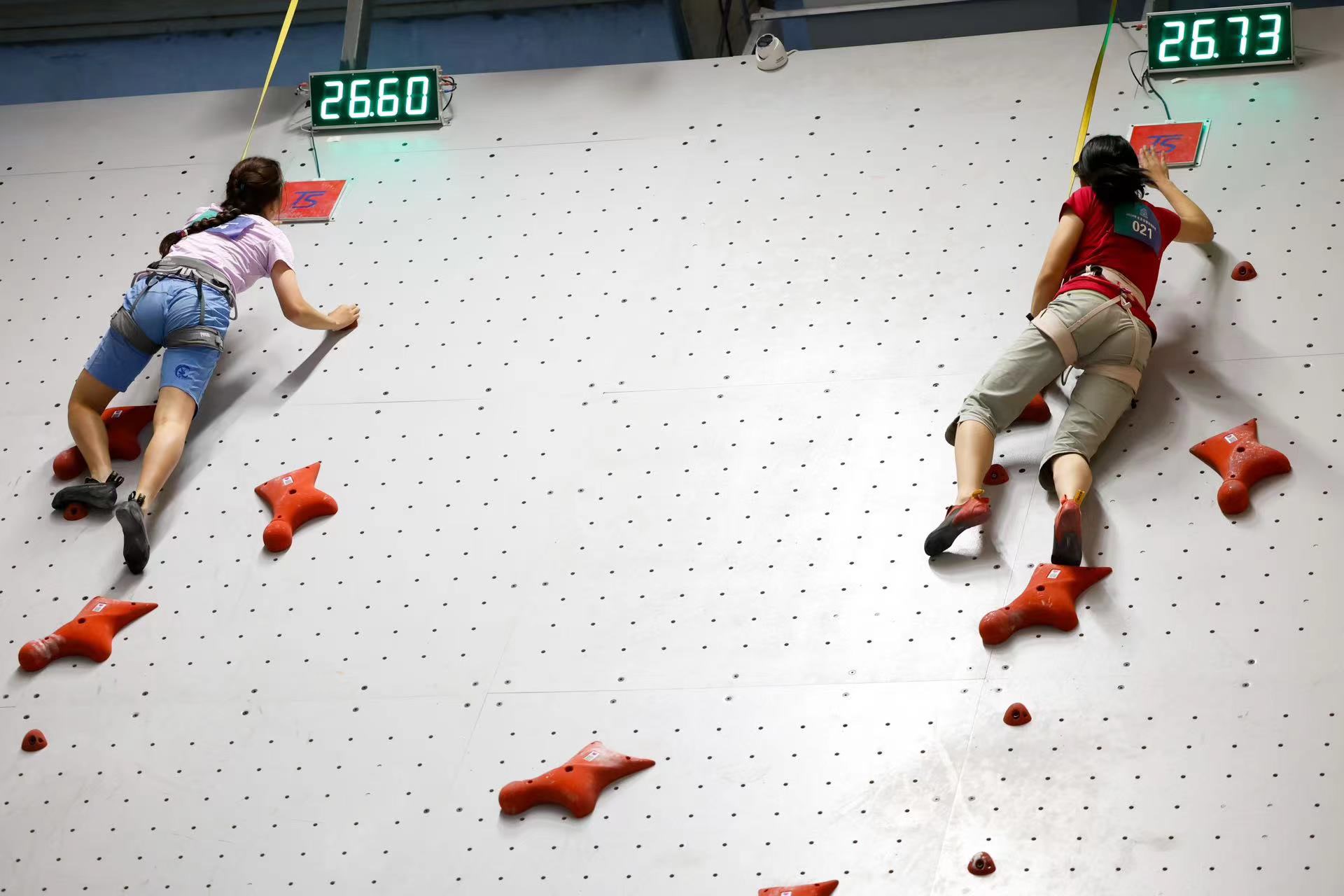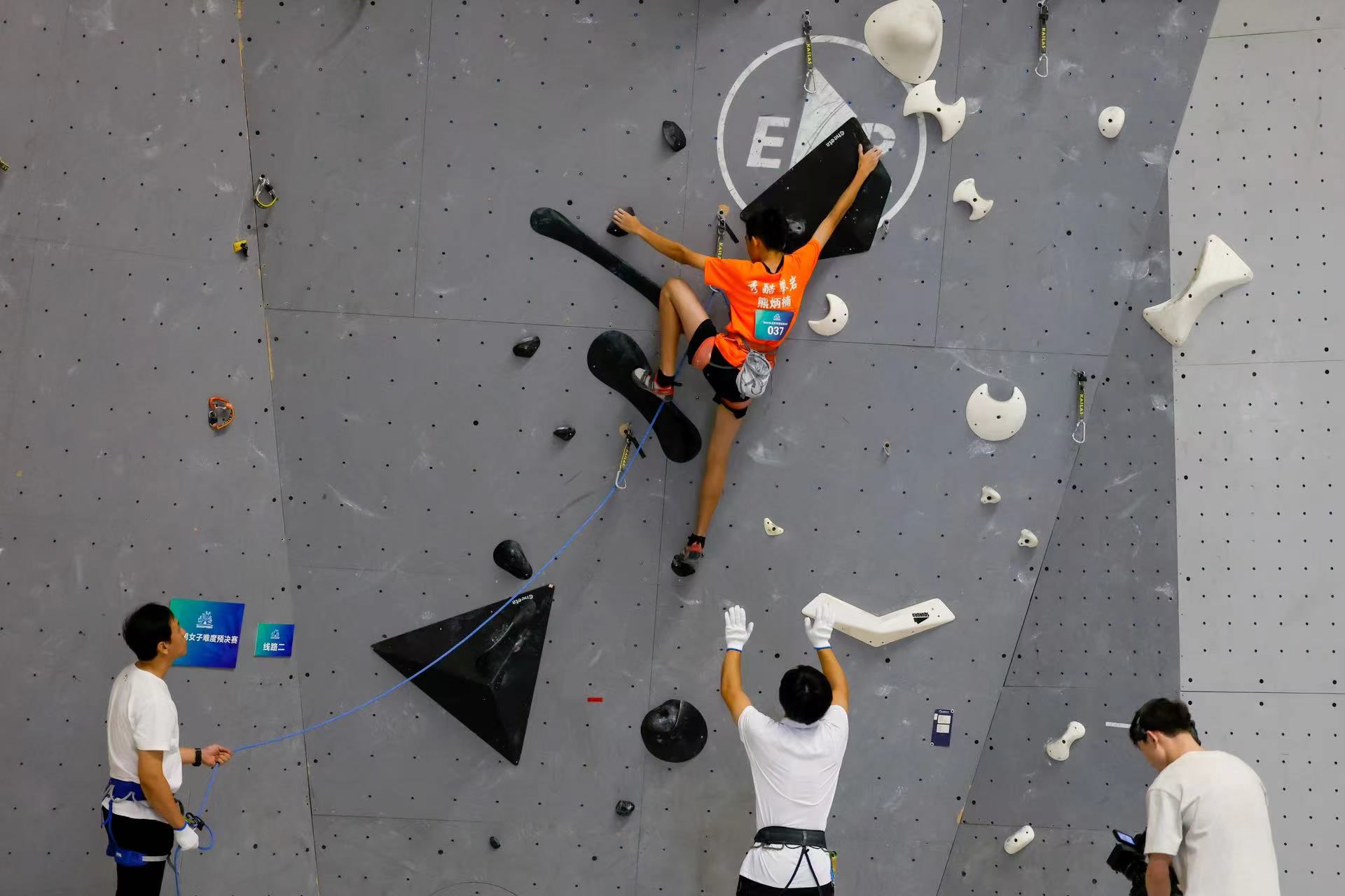 9月15日,2024年北京市攀岩锦标赛在海淀区岩时攀登中心举行,来自全市的40余名青少年选手参赛。