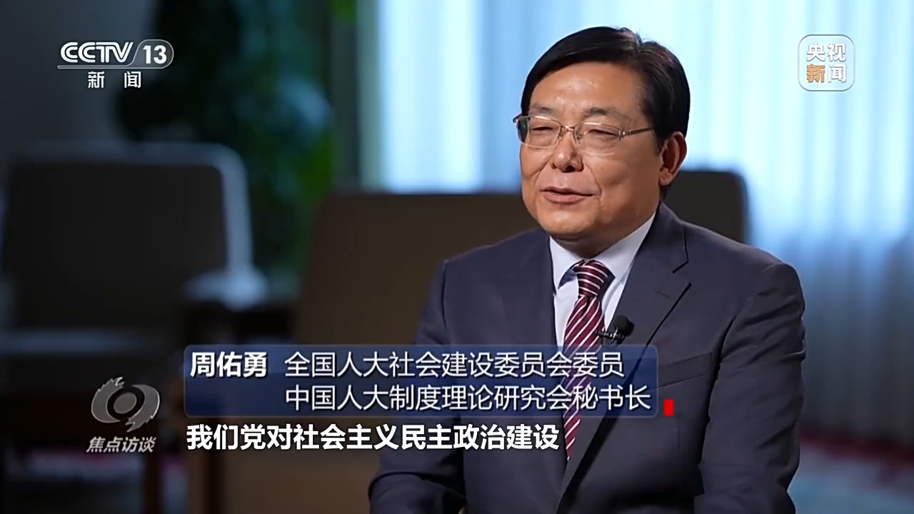 中国社会科学院法学所所长 莫纪宏:人民代表大会制度是全过程人民民主的制度载体,在庆祝全国人大成立70周年大会讲话中又进一步突出了这样一个要点,说明人民代表大会制度和全过程人民民主密切相关。