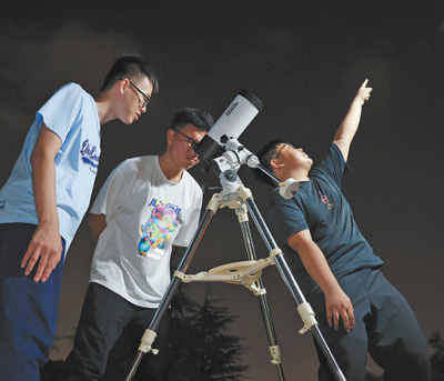 南京大学天文协会利用天文望远镜进行天文观测。余乐摄(人民视觉)