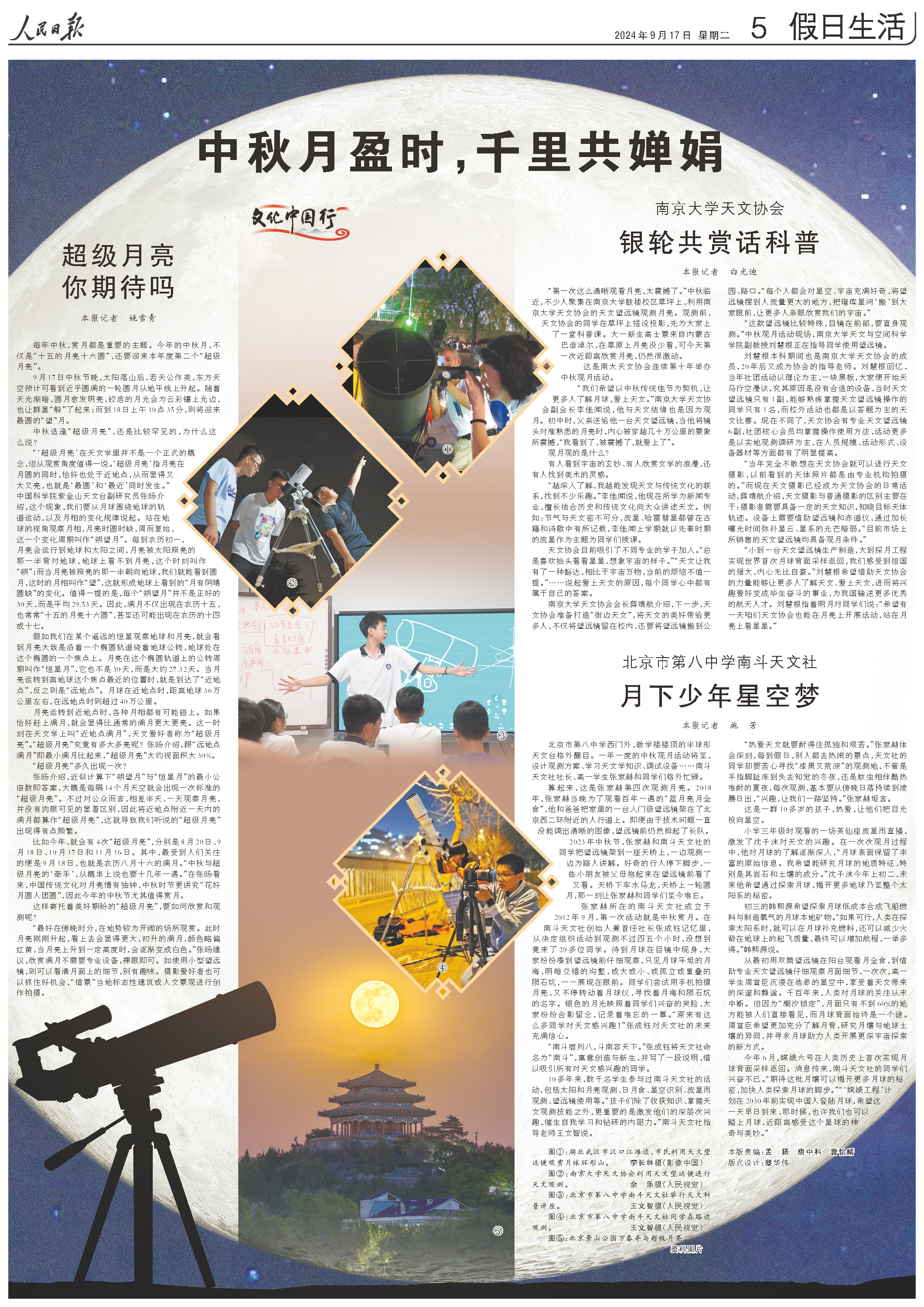 北京市第八中学西门外,教学楼楼顶的半球形天文台格外醒目。一年一度的中秋观月活动将至,设计观测方案、学习天文学知识、调试设备……南斗天文社社长、高一学生张家赫和同学们格外忙碌。