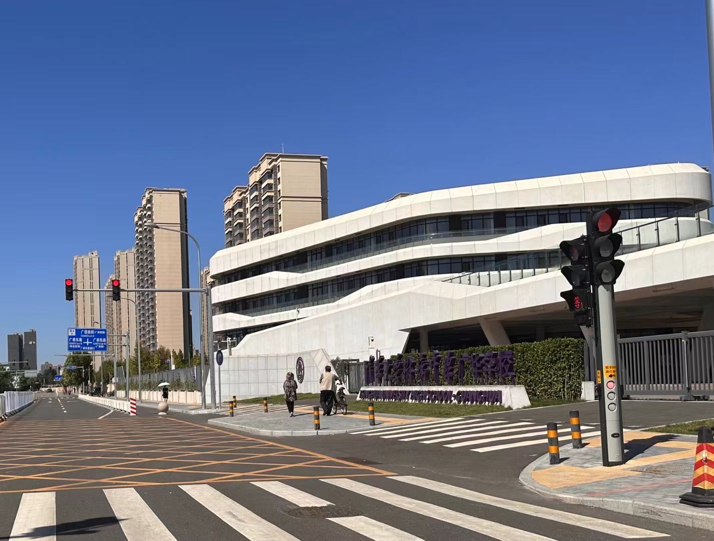 新学期伊始,清华大学附属中学广华学校的家长就发现孩子上下学迎来了一个问题:学校在本学期开放南门、关闭北门。由于广华新城开发项目尚未建设完毕,学校南门外的广信南街道路交通设施不健全,导致在上下学期间接送孩子的车辆乱停,校门口堵成了一锅粥。