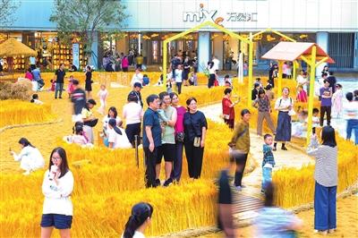 中秋假期,西北旺万象汇在沐风广场打造“秋寻麦野”场景,为消费者带来沉浸式互动体验。