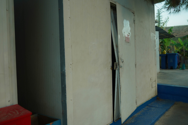 图为营区里的门受冲击波受损【瞿发统 摄】