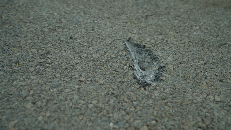 图为航弹残片将营区水泥路面砸出坑洞【瞿发统 摄】