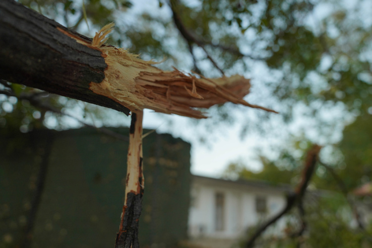 图为航弹残片打断的树枝【瞿发统 摄】