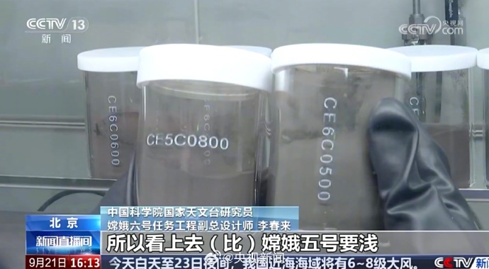 今年6月,嫦娥六号携带月壤返回地球。近日,珍贵的月背“土特产”完成解封,并被分装到10个玻璃器皿中。据了解,相比嫦娥五号样品,嫦娥六号月背样品颜色略浅、密度更小、颗粒来源也更为复杂。嫦娥六号的月壤样品里面,有很多白色物质,包括月壤里面的长石矿物,明显比嫦娥五号多,另外玻璃碎片也多得多,整体看上去比嫦娥五号的样品要浅。