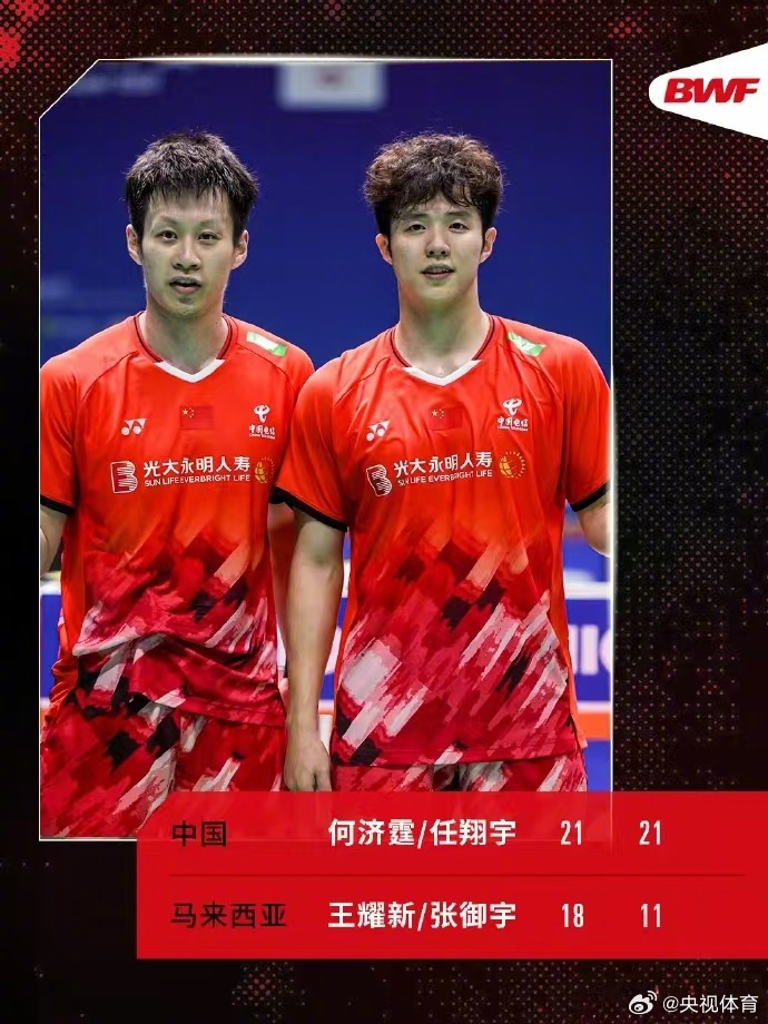 2024中国羽毛球公开赛男双半决赛,何济霆/任翔宇 2-0战胜马来西亚组合王耀新/张御宇,晋级决赛!两局比分:21-18/21-11。