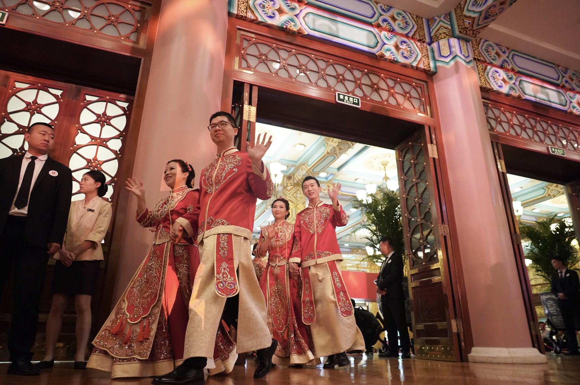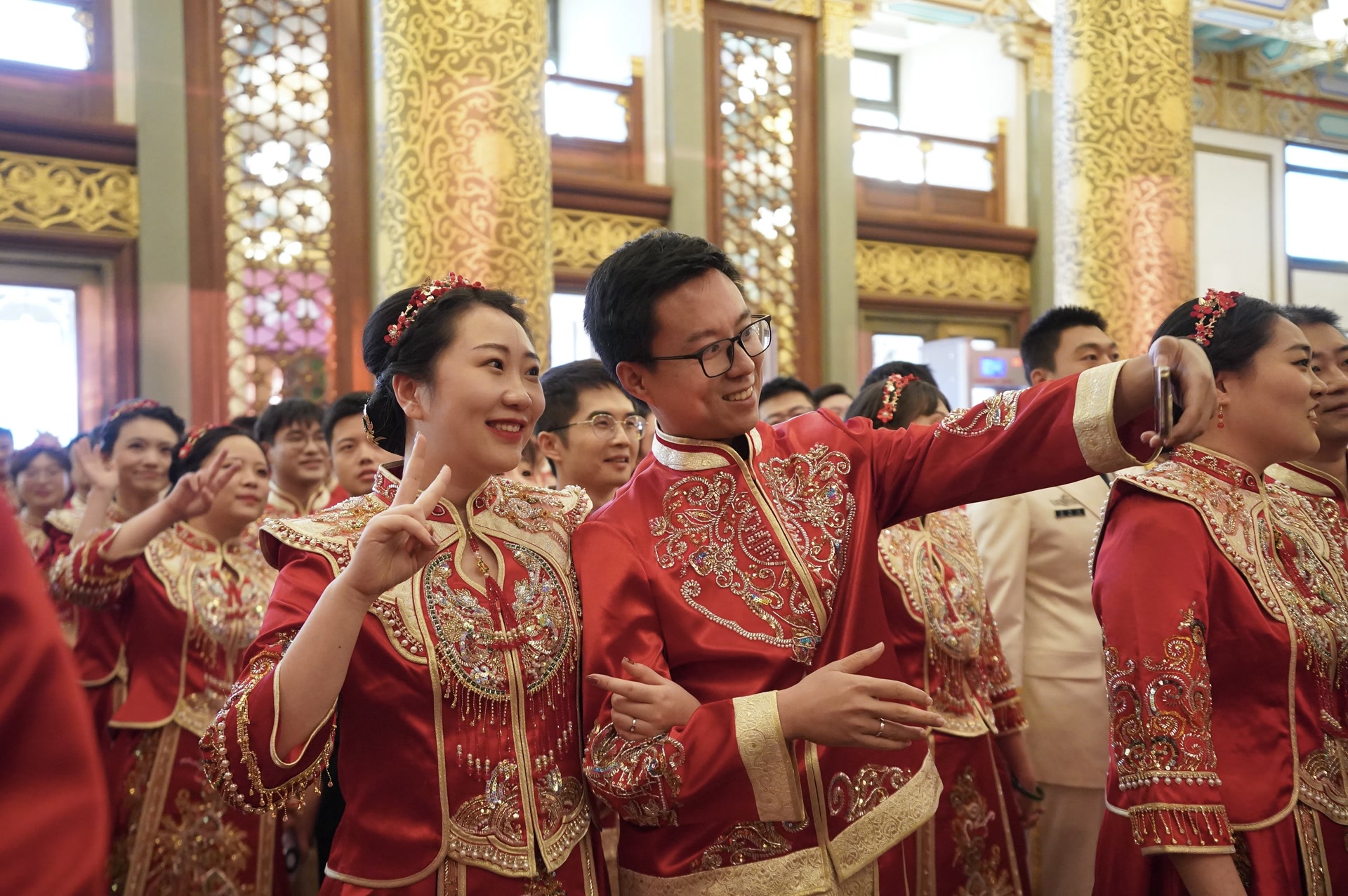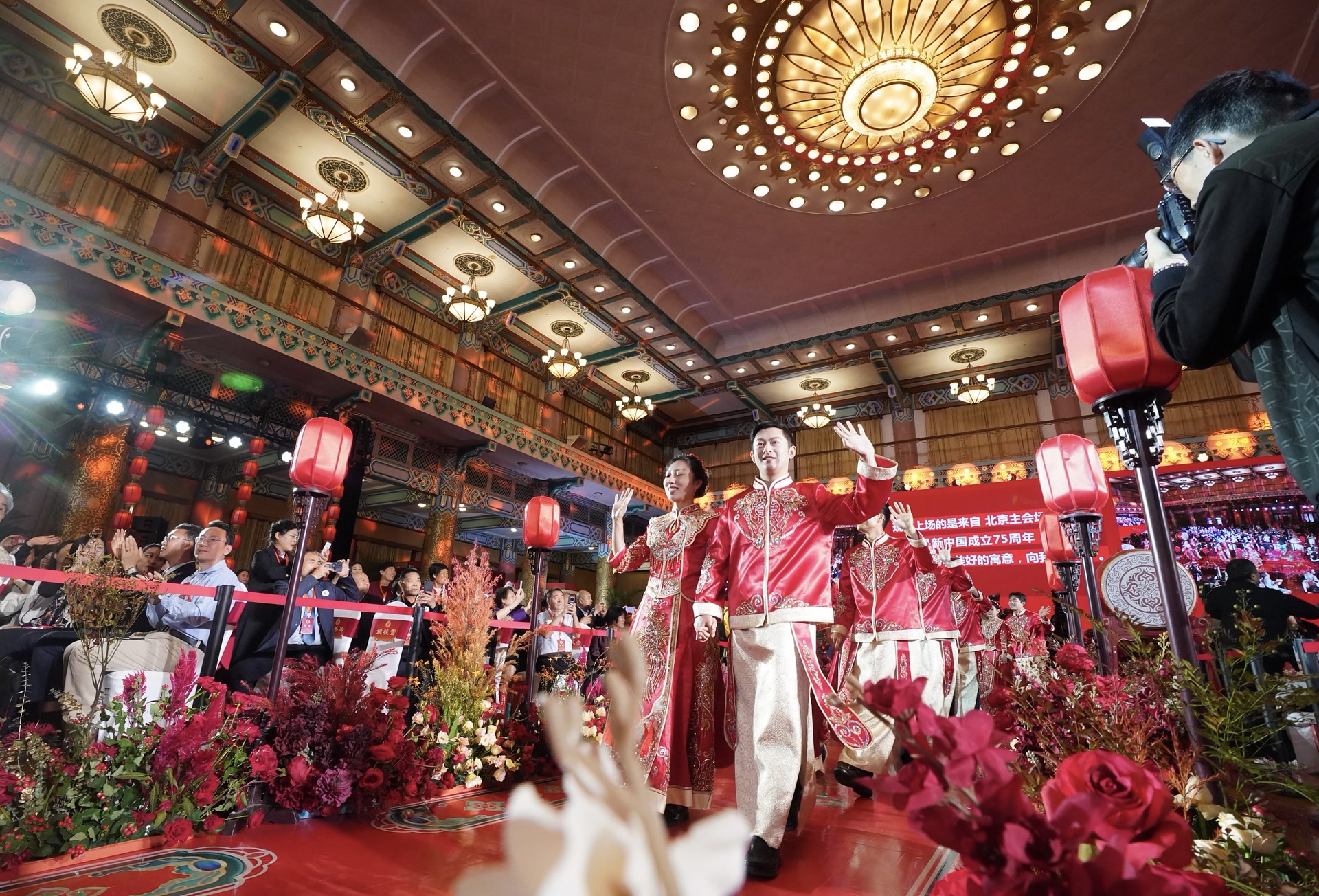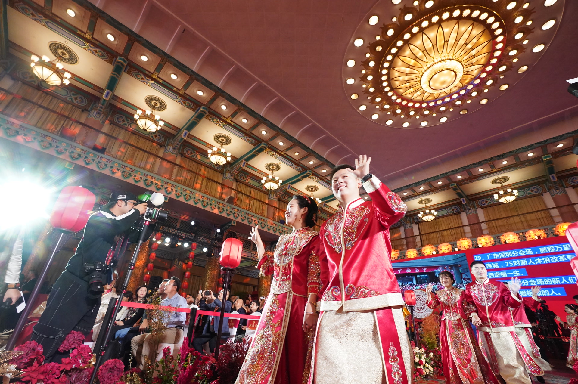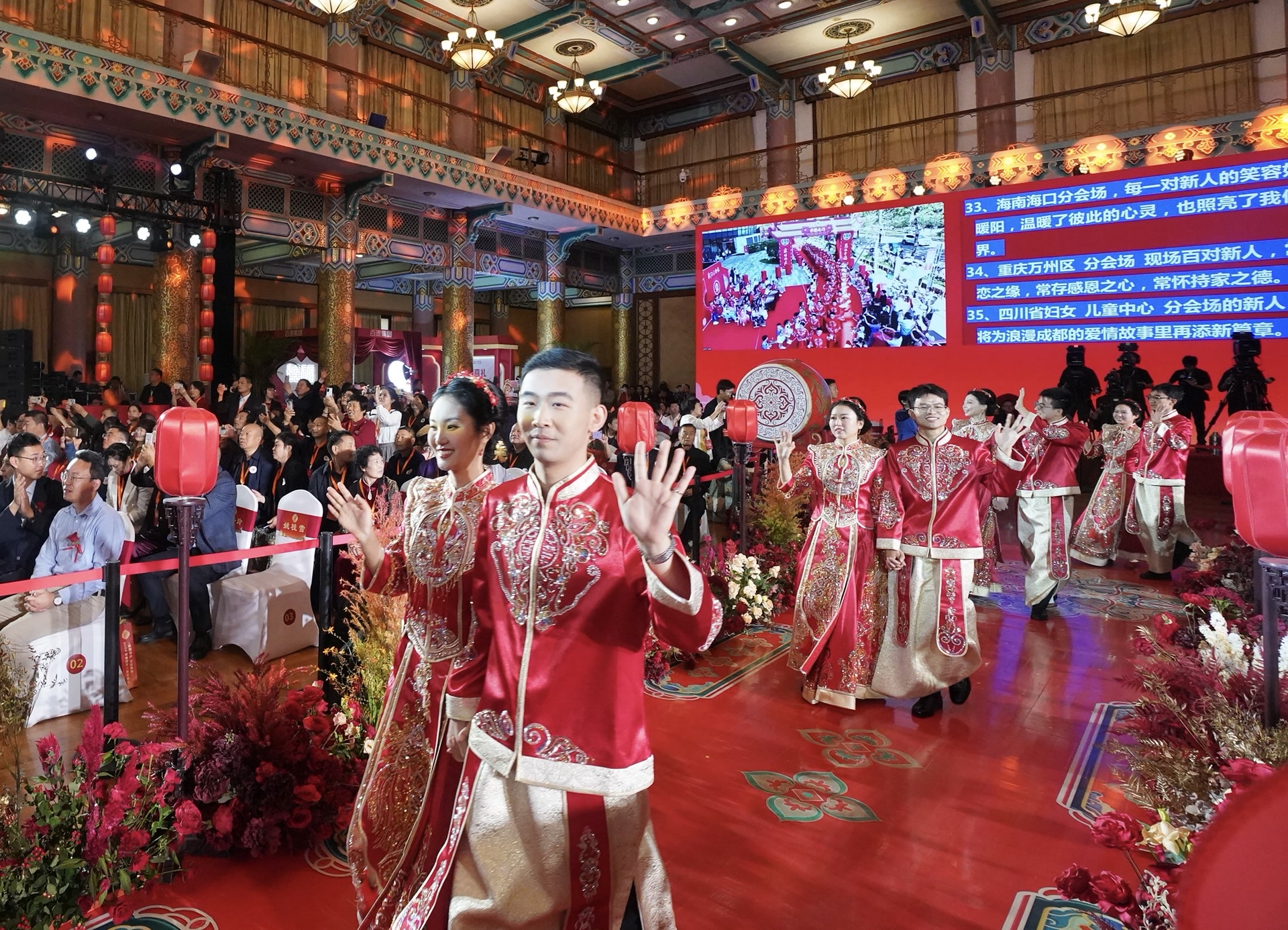北京是此次集体婚礼的主会场。北京饭店这座见证了无数历史时刻的地标性建筑,当天被妆点得格外喜庆。75对新人携手步入礼堂。每一对新人的脸上都洋溢着抑制不住的喜悦,那是对爱情的忠贞和对新生活的期待。