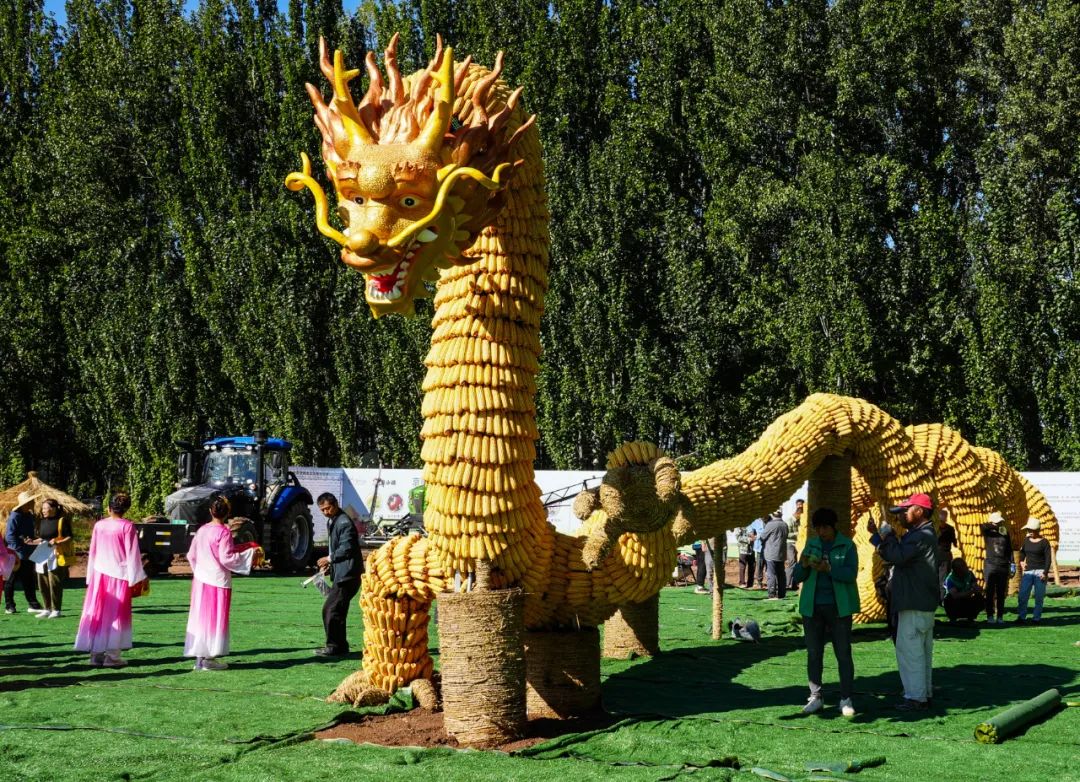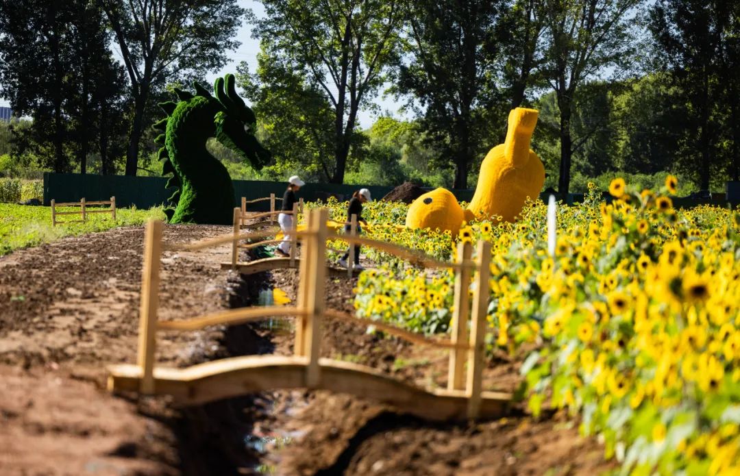 活动现场设置了百亩向日葵花海、卡通造型、玉米金龙、智能农机等多个拍照打卡点。