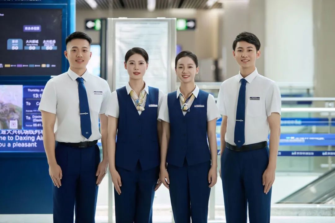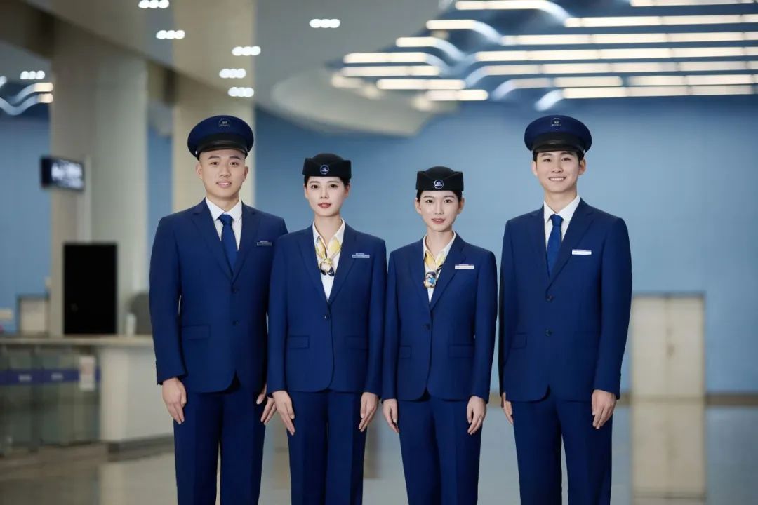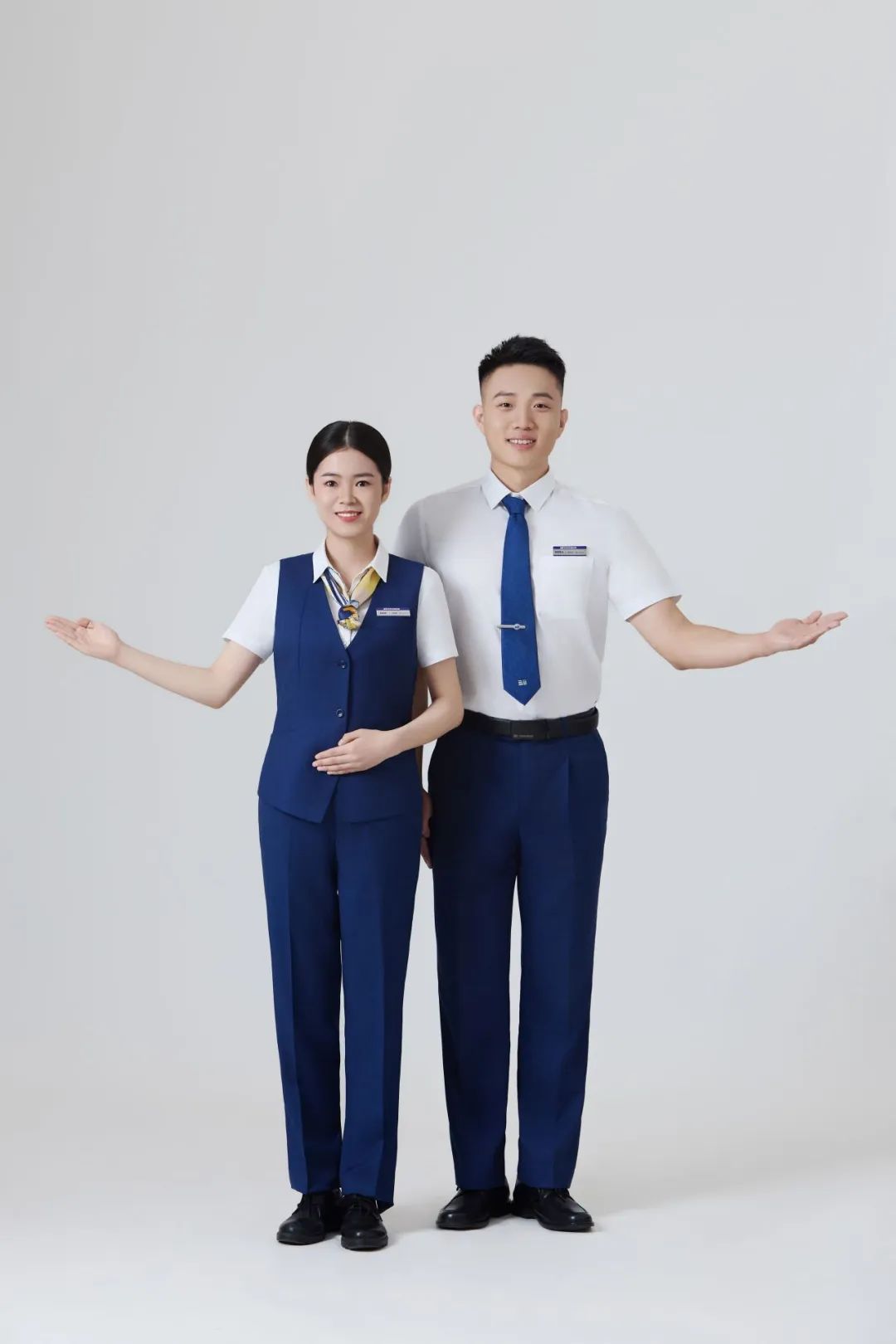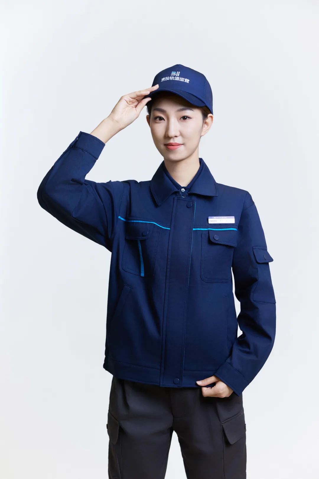 综合岗位西服套装采用与运营岗位相同款式,确保公司形象一致,配饰取消工牌,改为京投品牌徽章,男士取消大檐帽,更适合多种场合穿着。